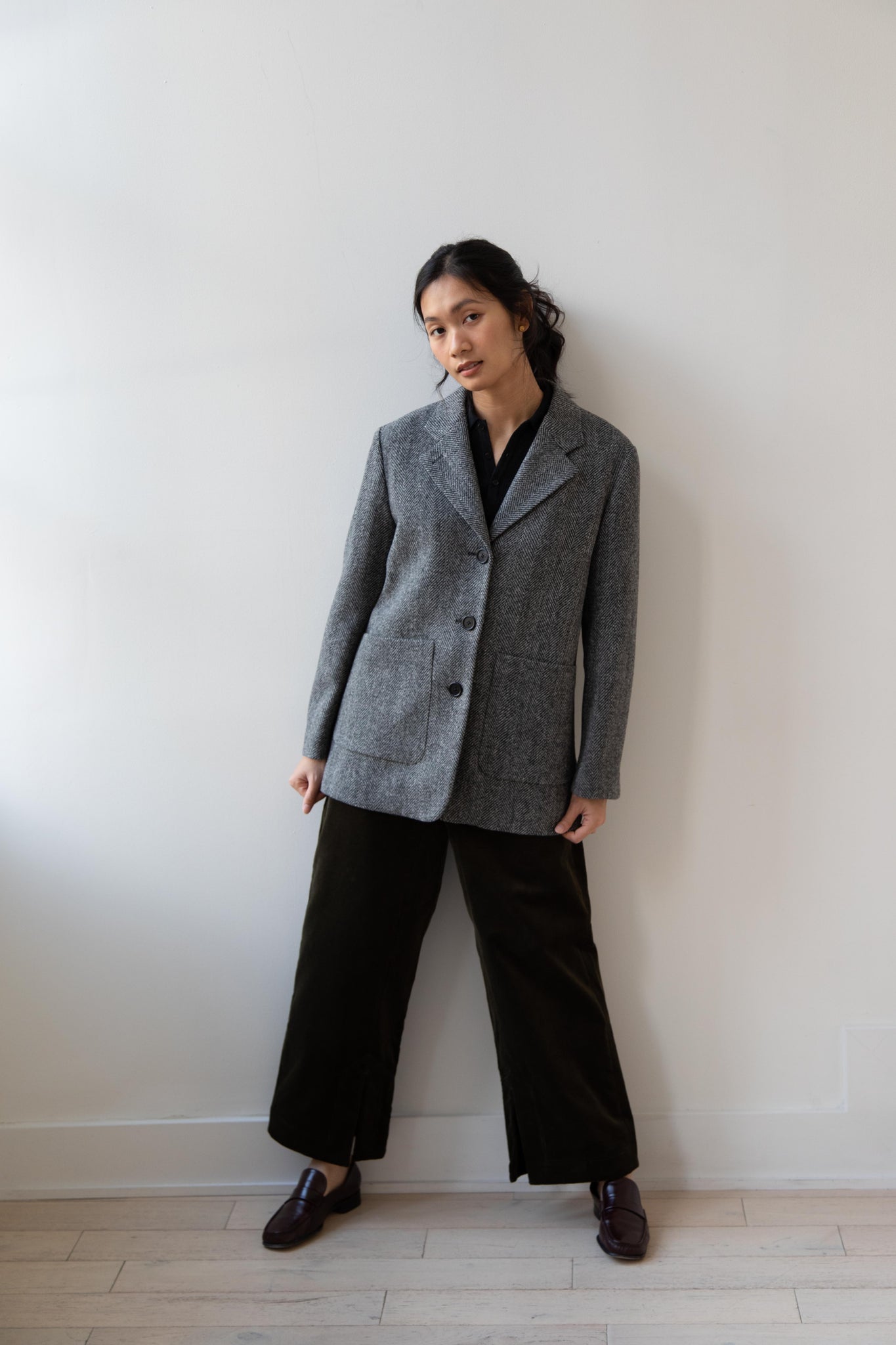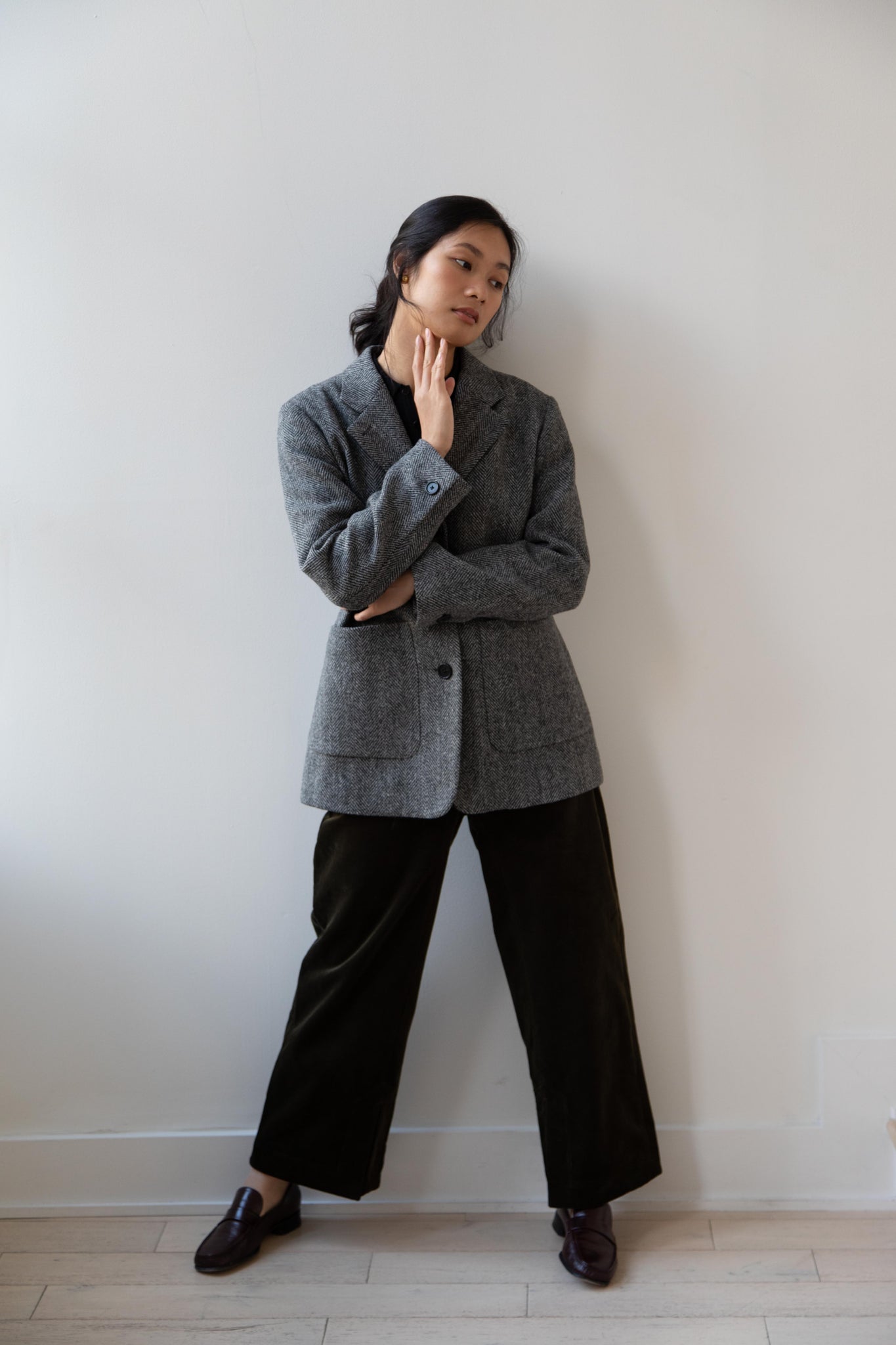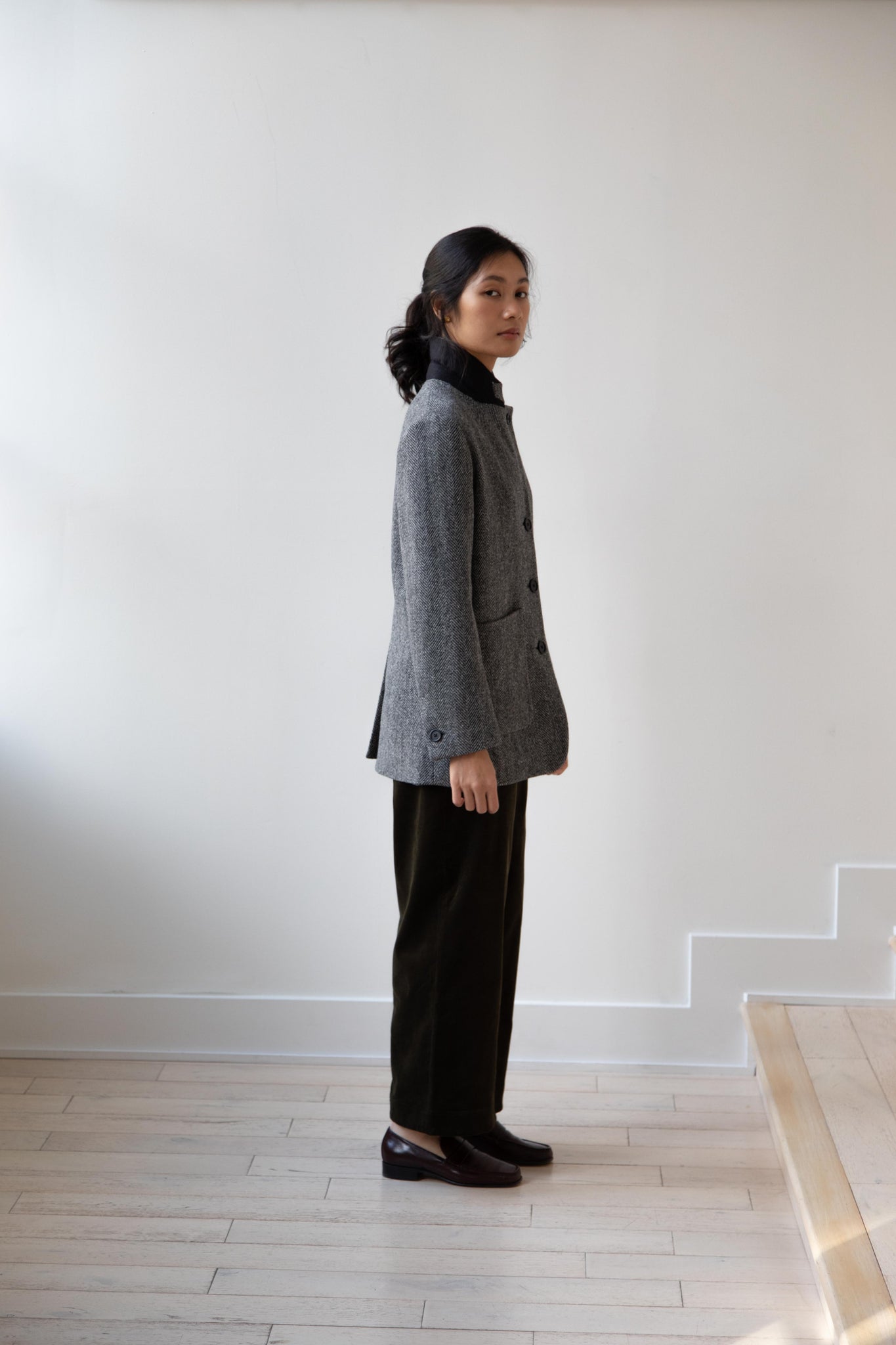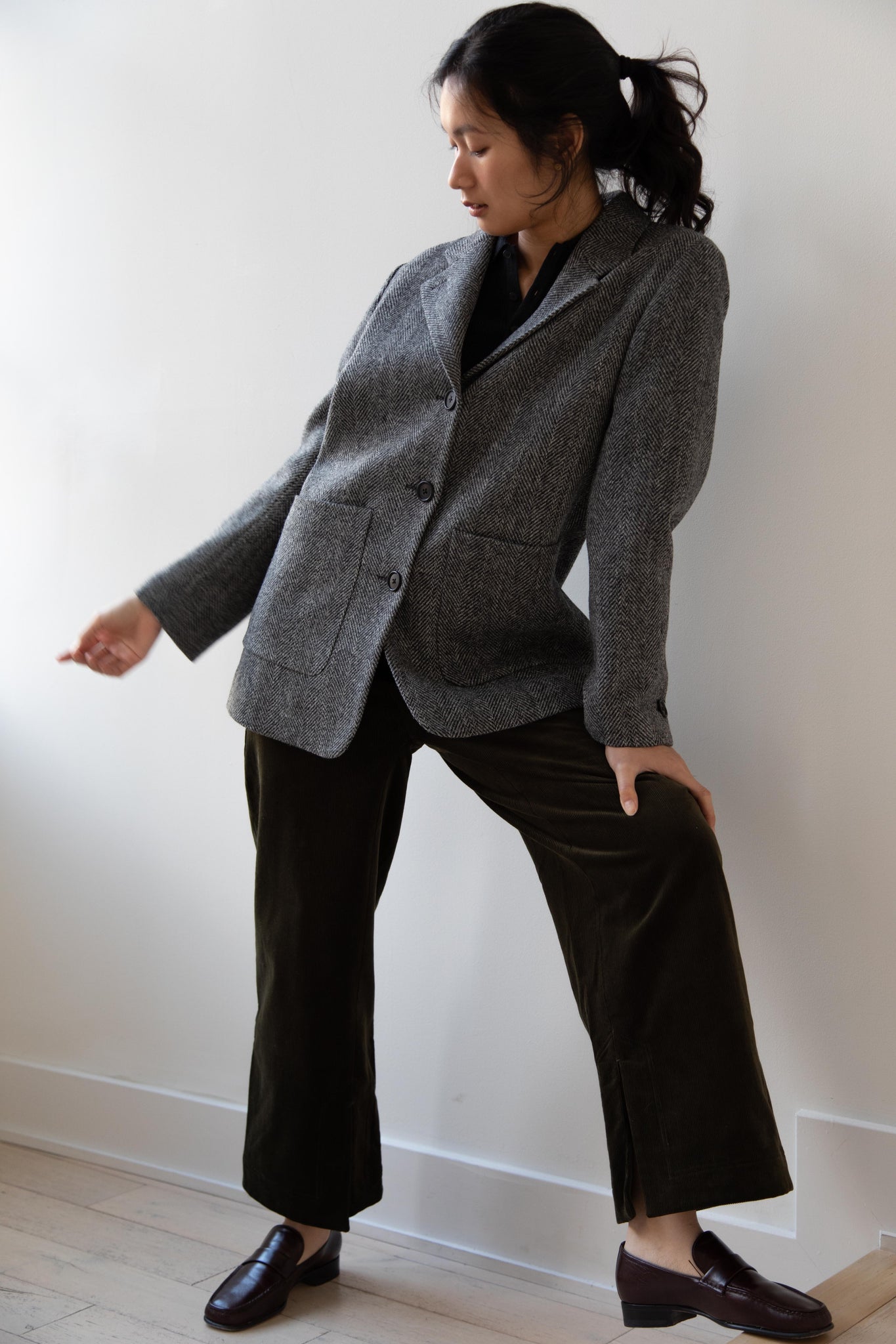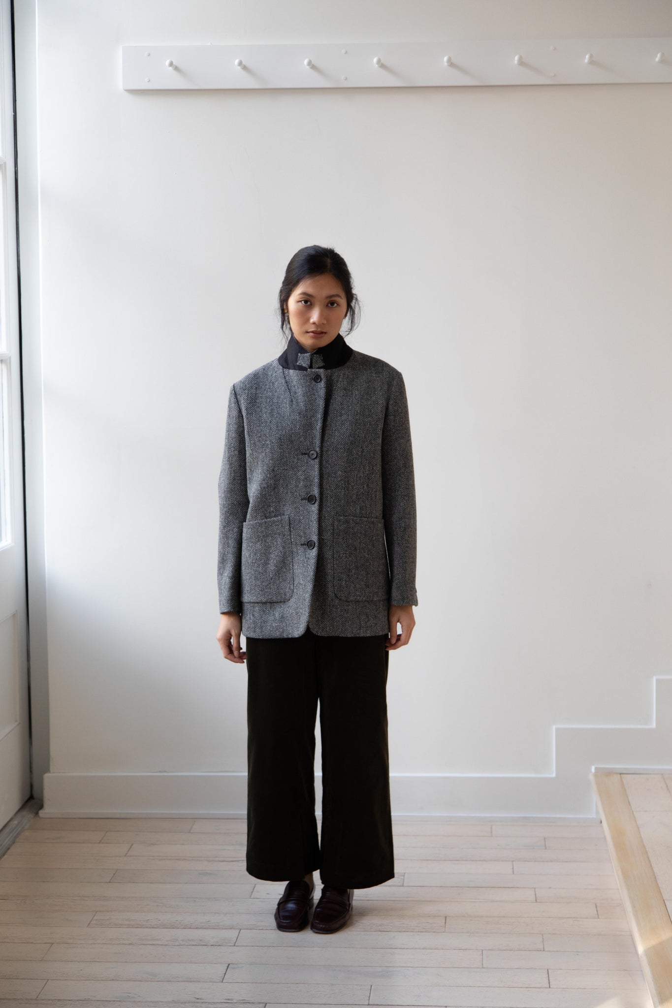 Nothing quite says fall like wool herringbone, it makes us excited for autumn jaunts across a misty field or a quick run to the coffee shop.  This classic blazer has a three button front and two patch pockets.  There is an optional button at the top lapel when there is a bit of chill in the air too!