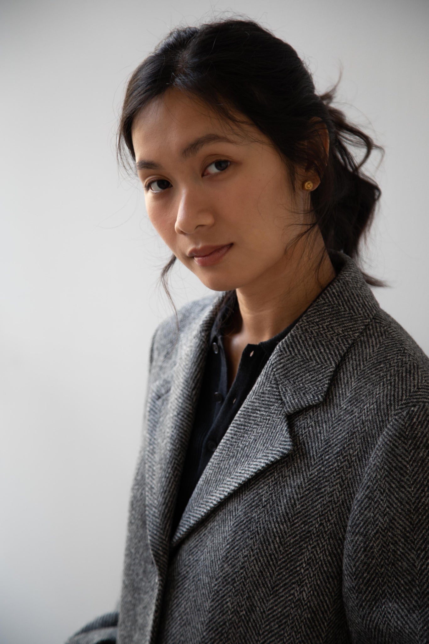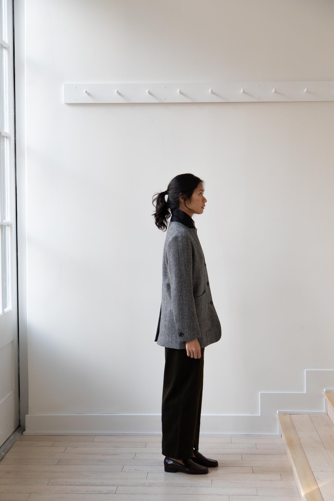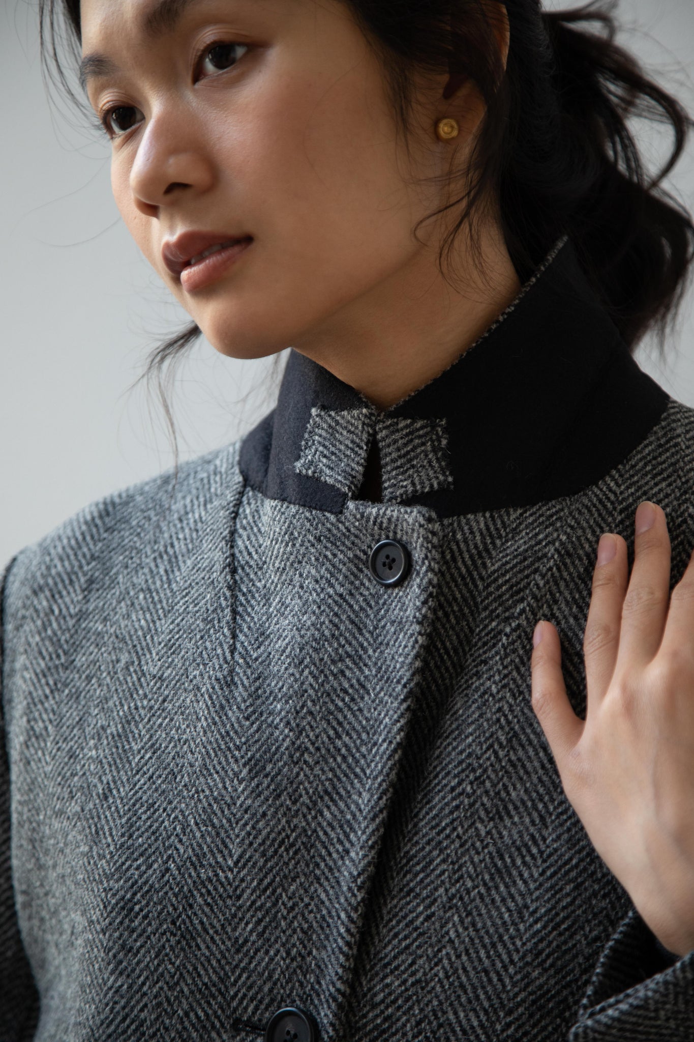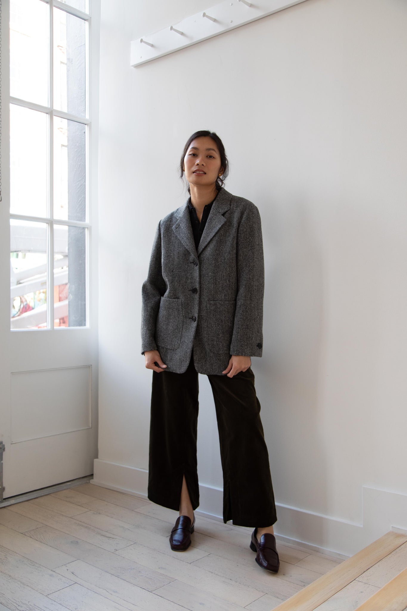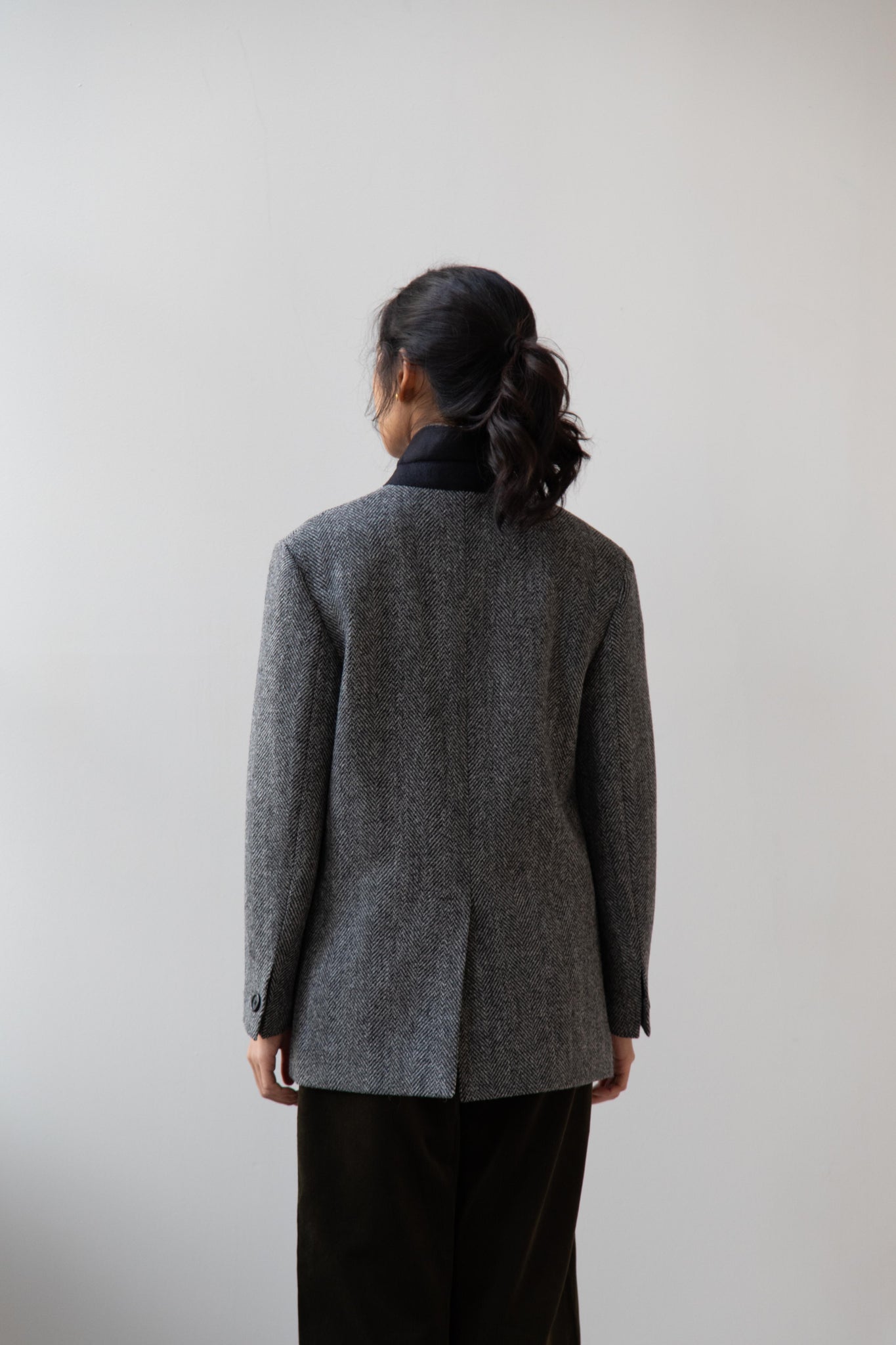 Nothing quite says fall like wool herringbone, it makes us excited for autumn jaunts across a misty field or a quick run to the coffee shop.  This classic blazer has a three button front and two patch pockets.  There is an optional button at the top lapel when there is a bit of chill in the air too!