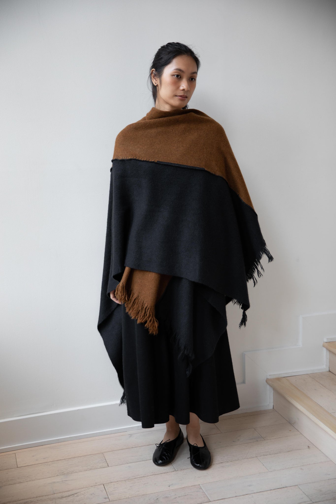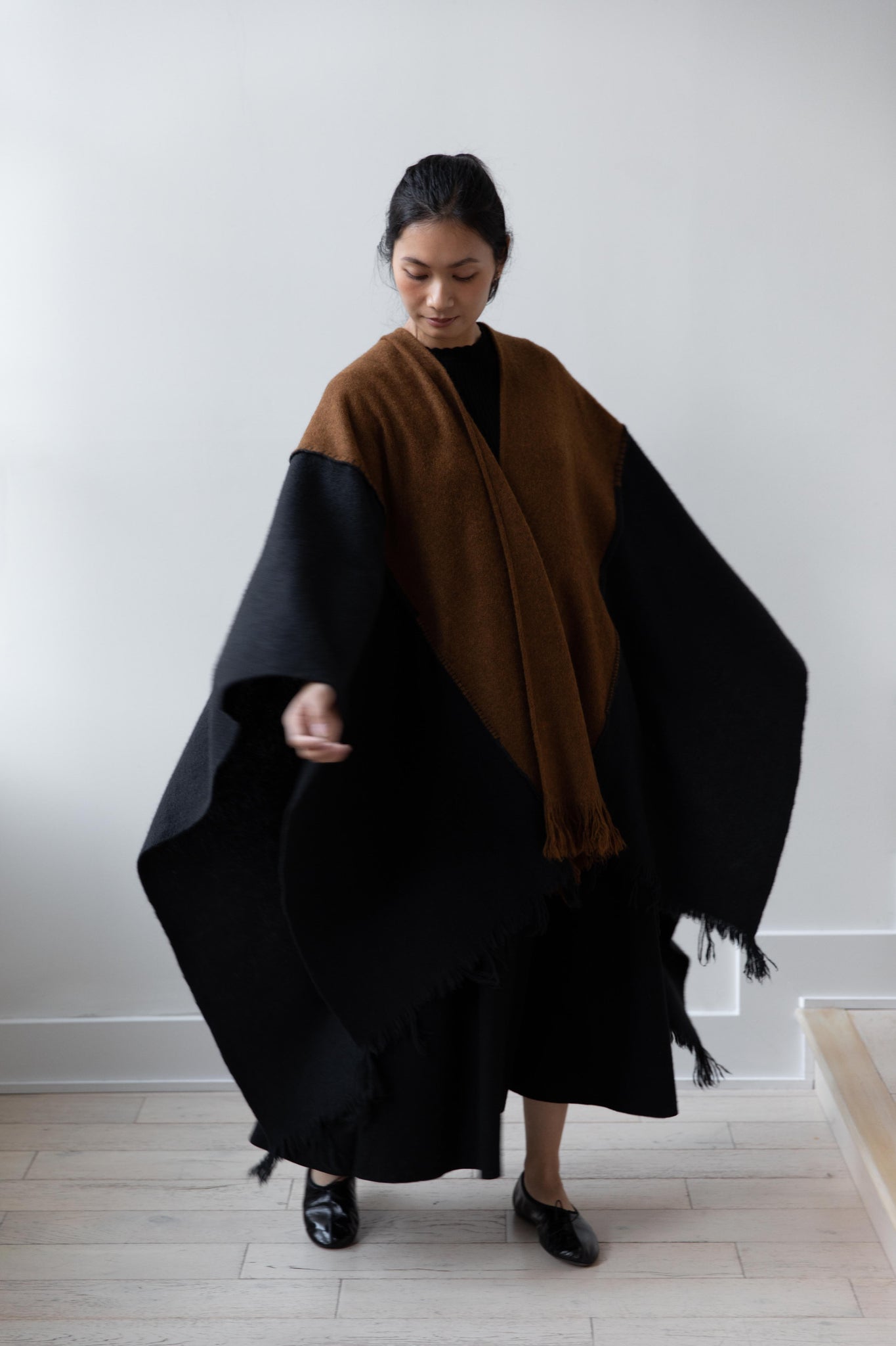 Norlha | Nomad Mount Boiled Cape in Wood Brown & Blue