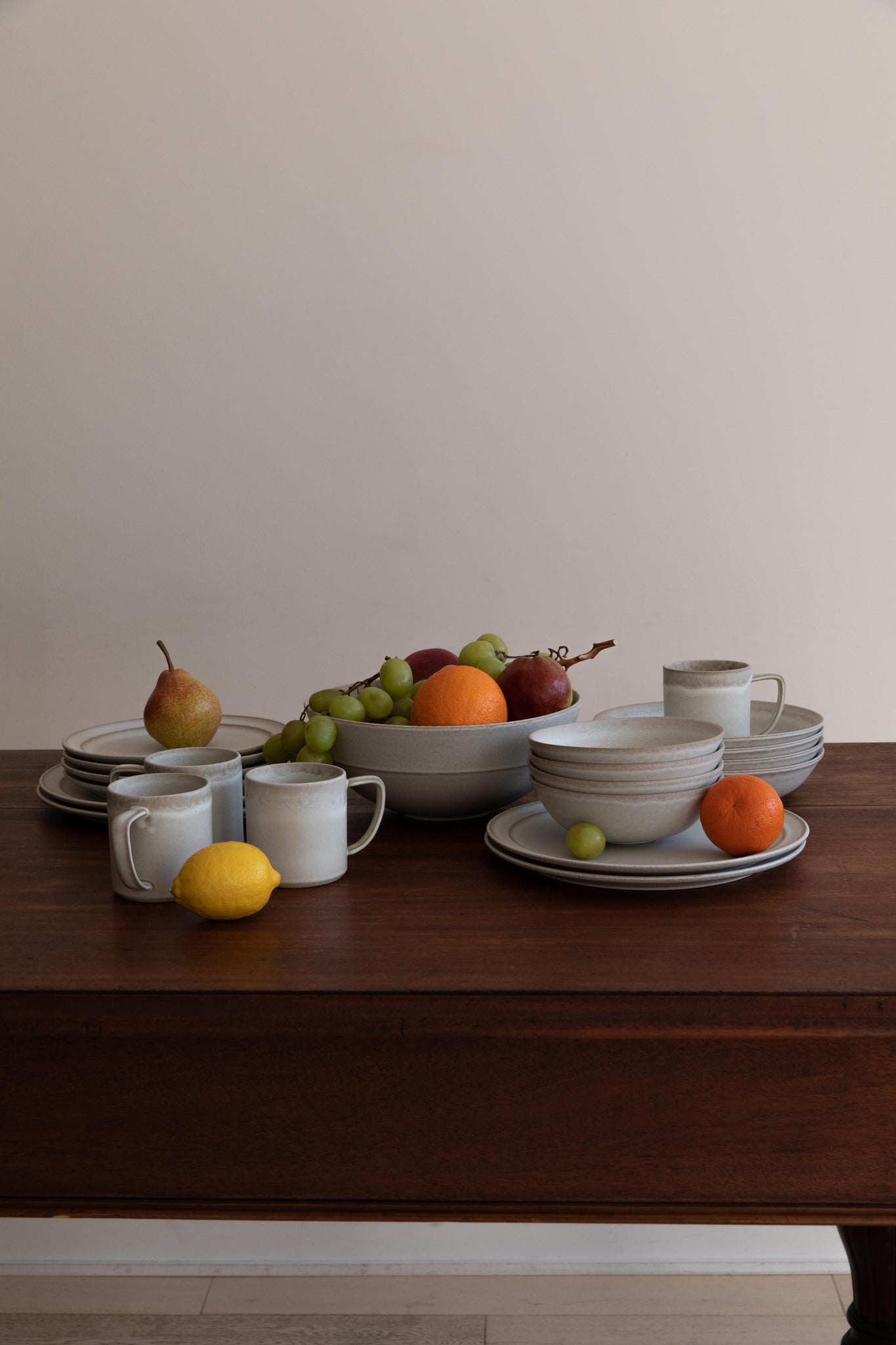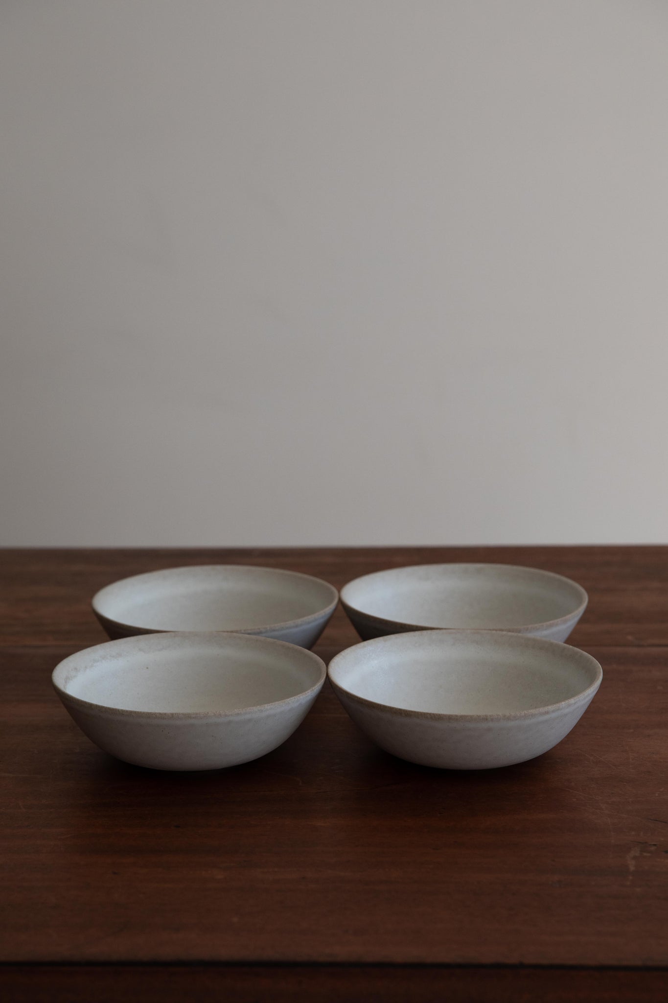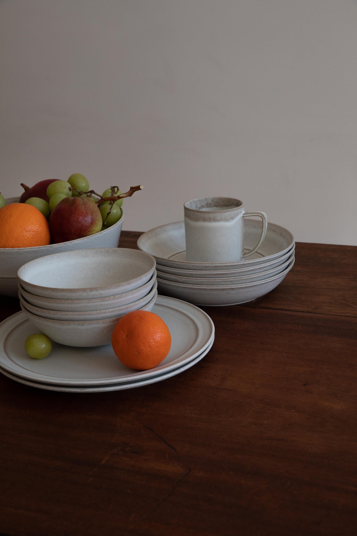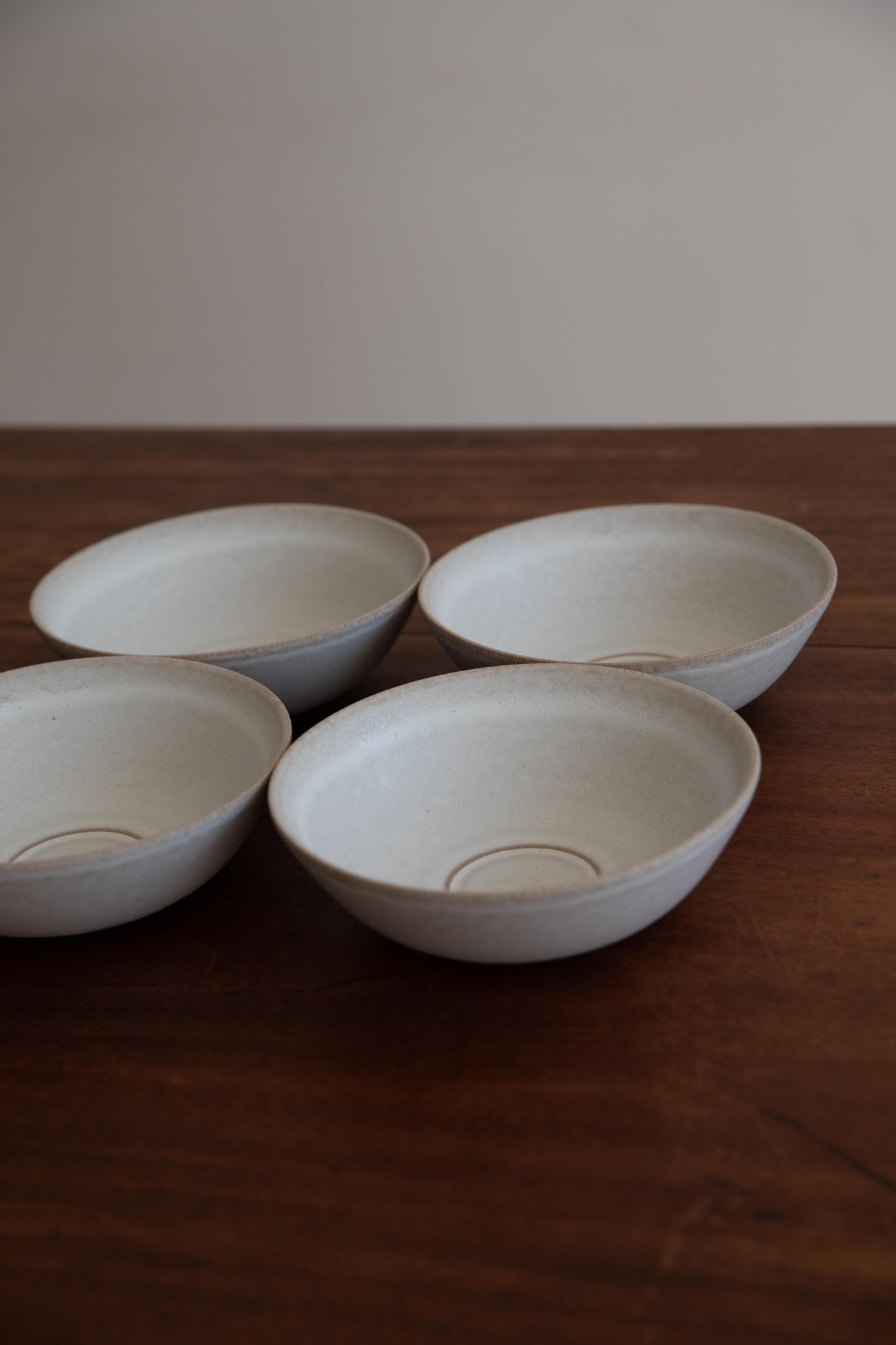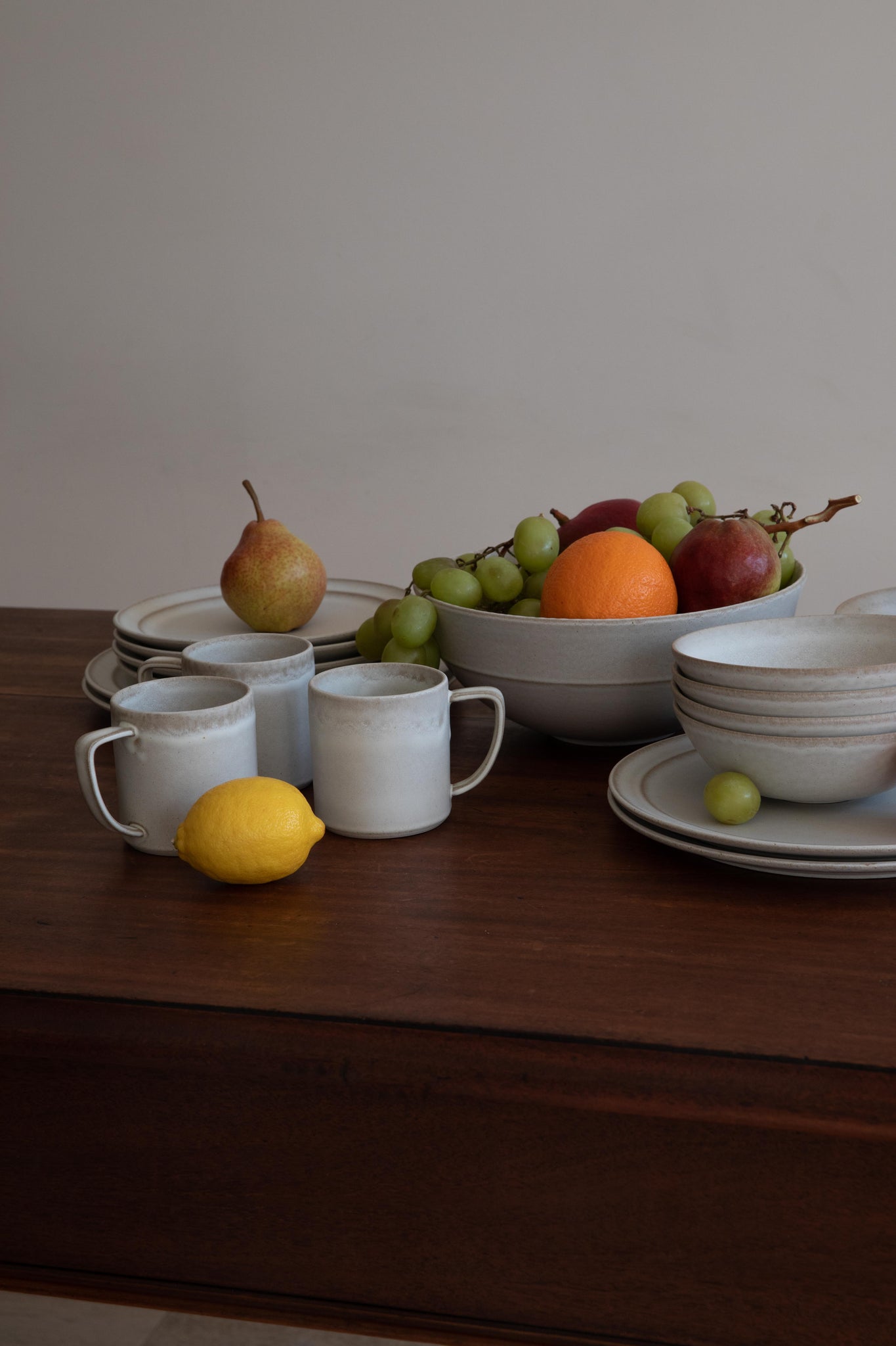 These beautiful bowls have the most stunning glaze. Made of a beige speckled ceramic, the glaze on top is a pearly off white, which is thinner in some areas around the rim which give a nice depth and texture showing the clay underneath. They work perfectly in a set, or if you need a special extra serving dish, these would work wonderfully.