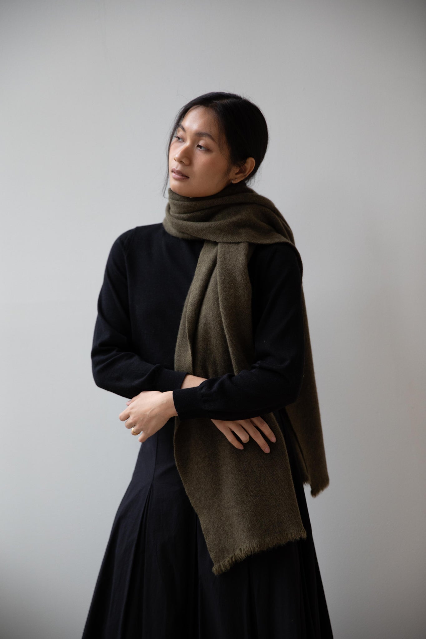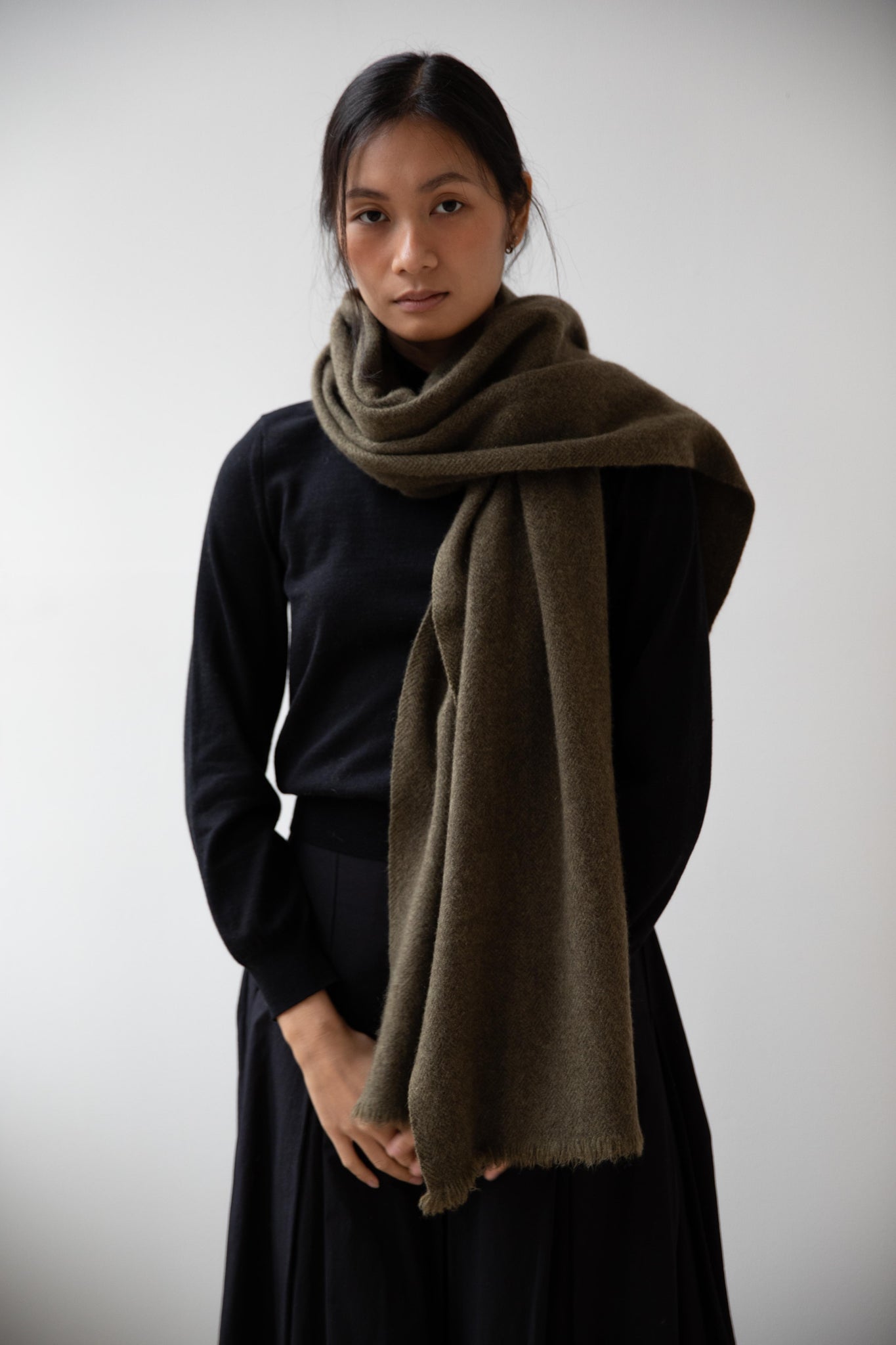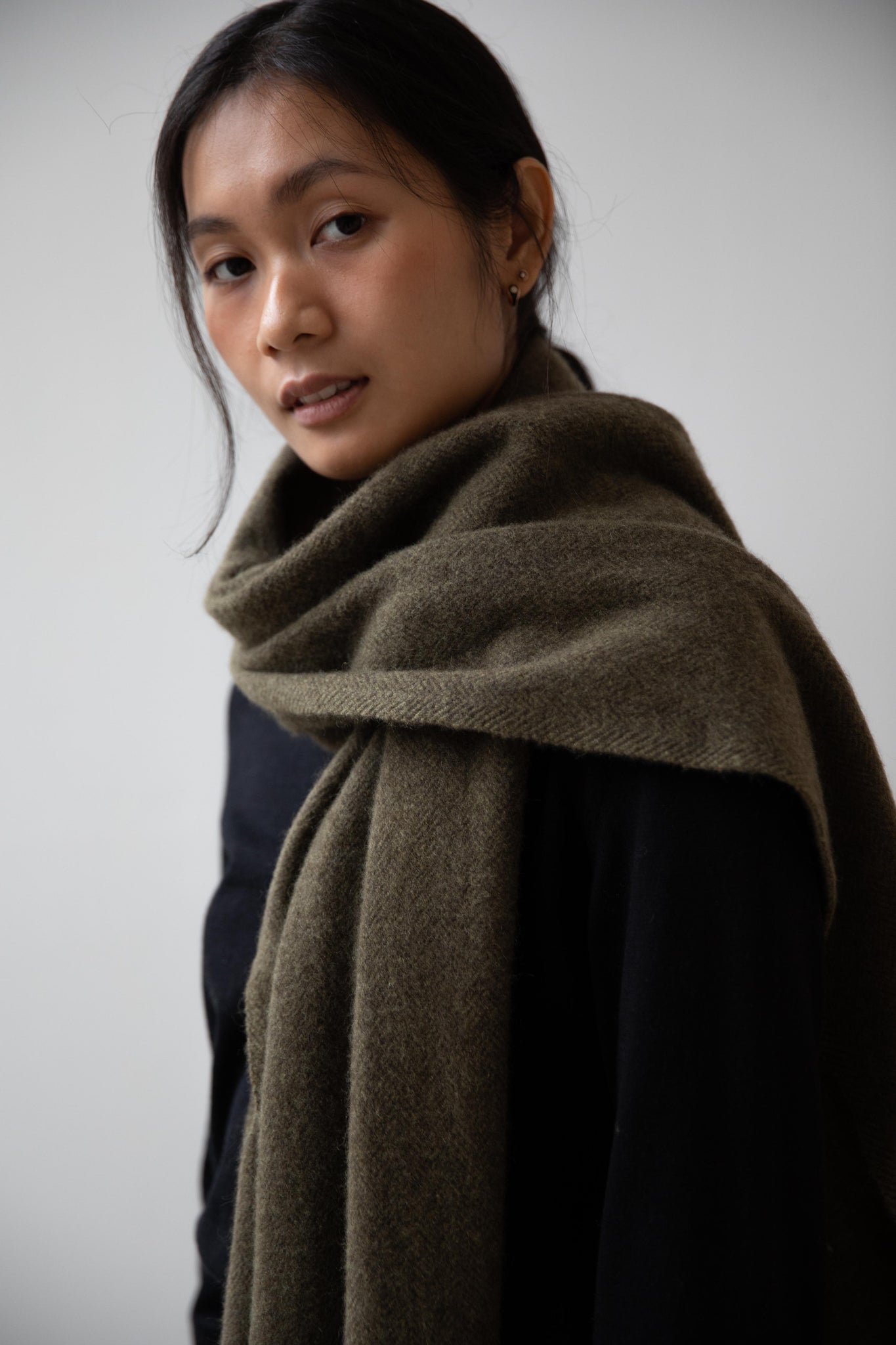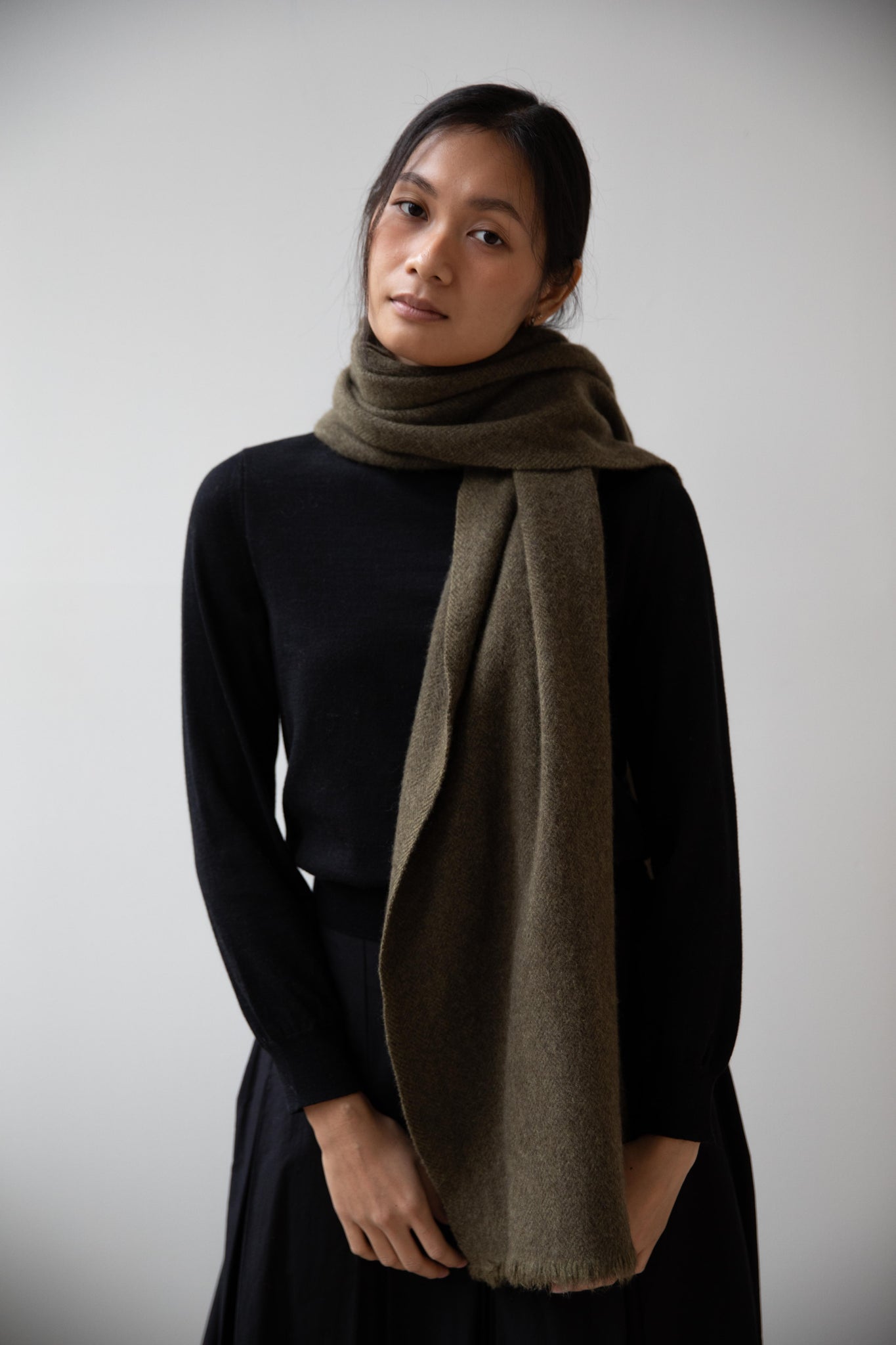Norlha | Nomad Dense Boiled Herringbone Scarf in Olive