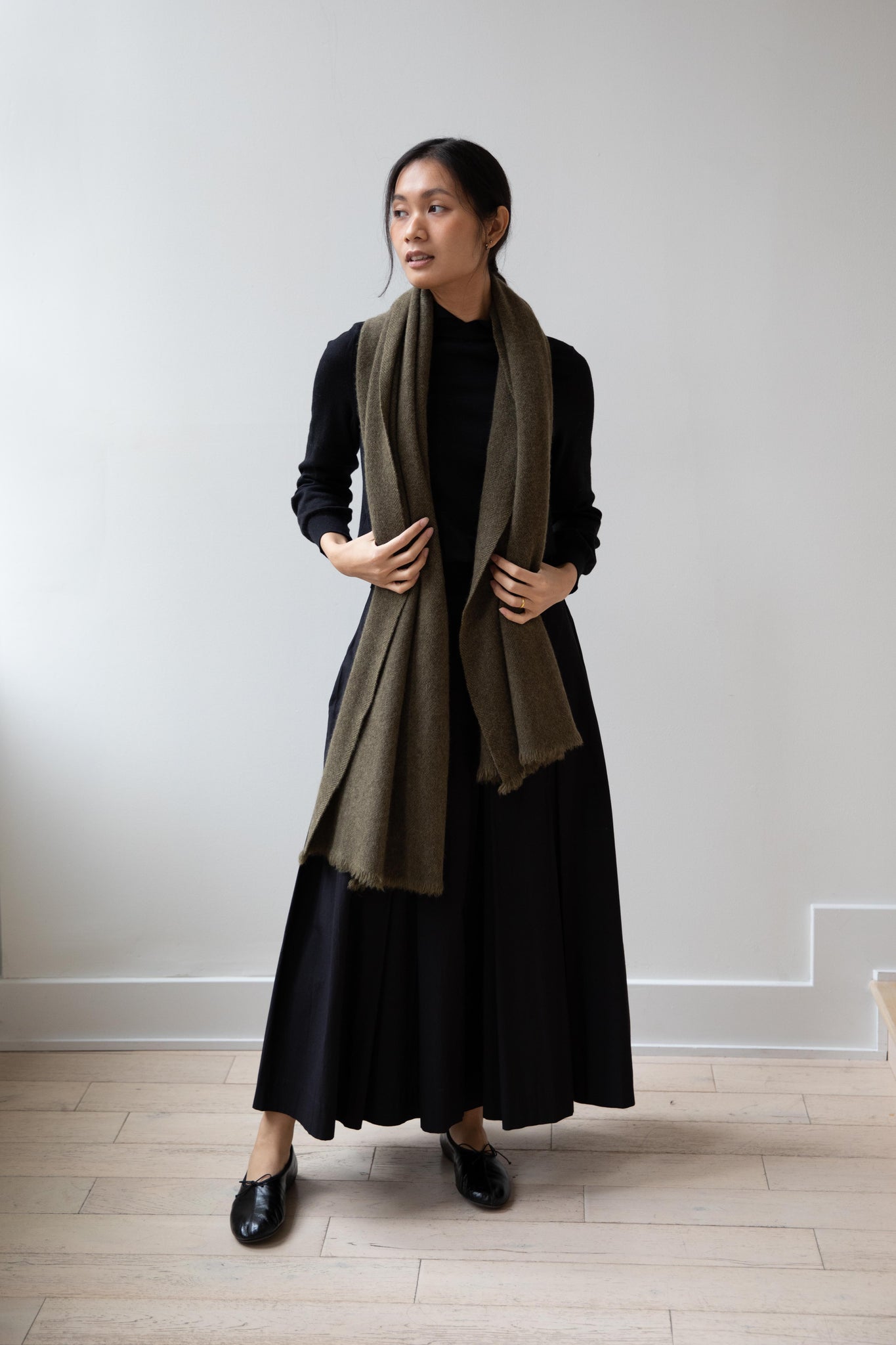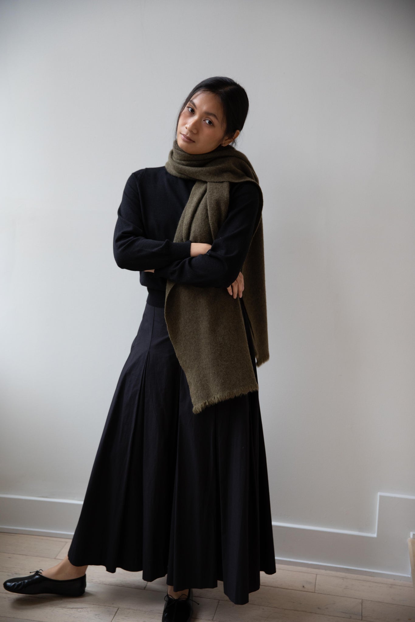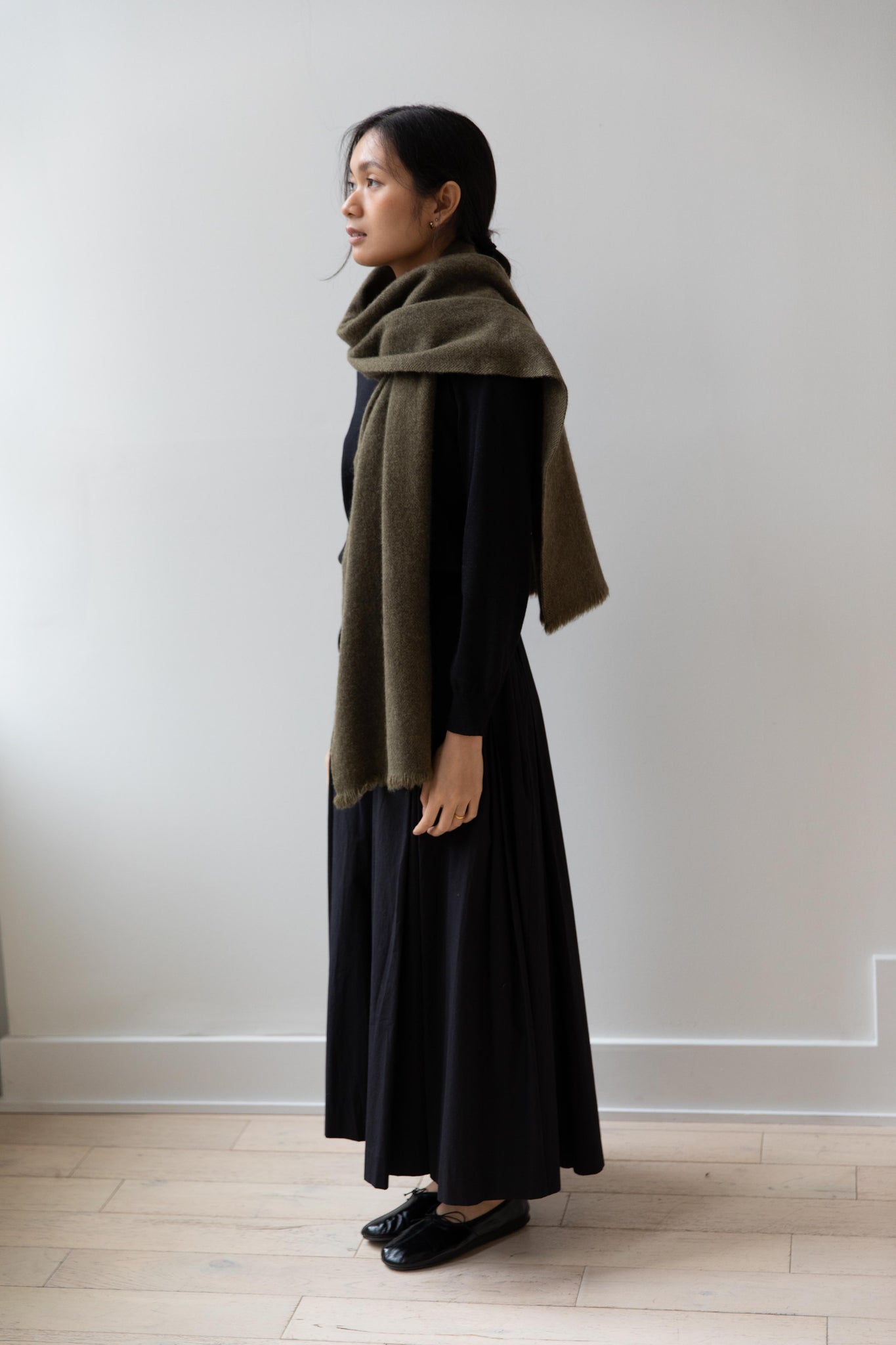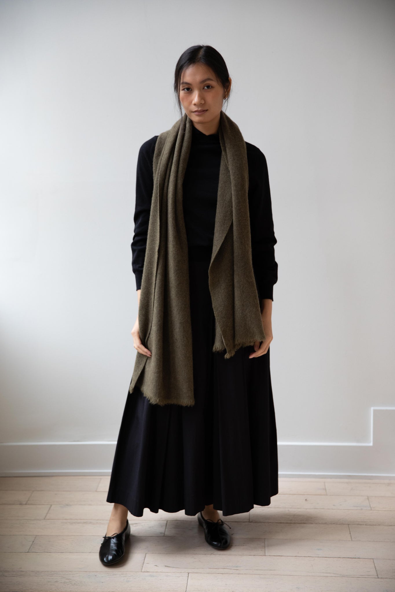 Norlha | Nomad Dense Boiled Herringbone Scarf in Olive