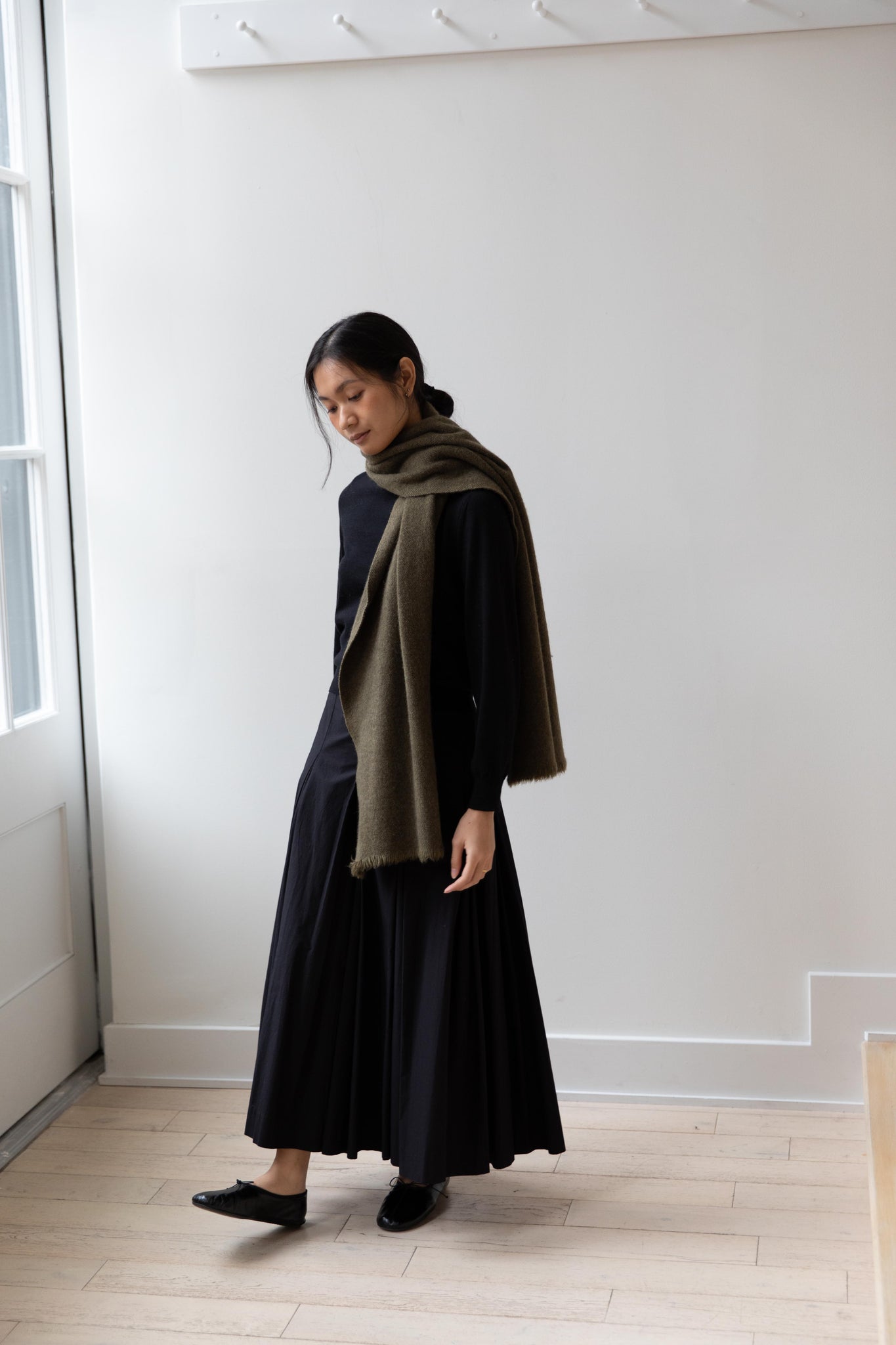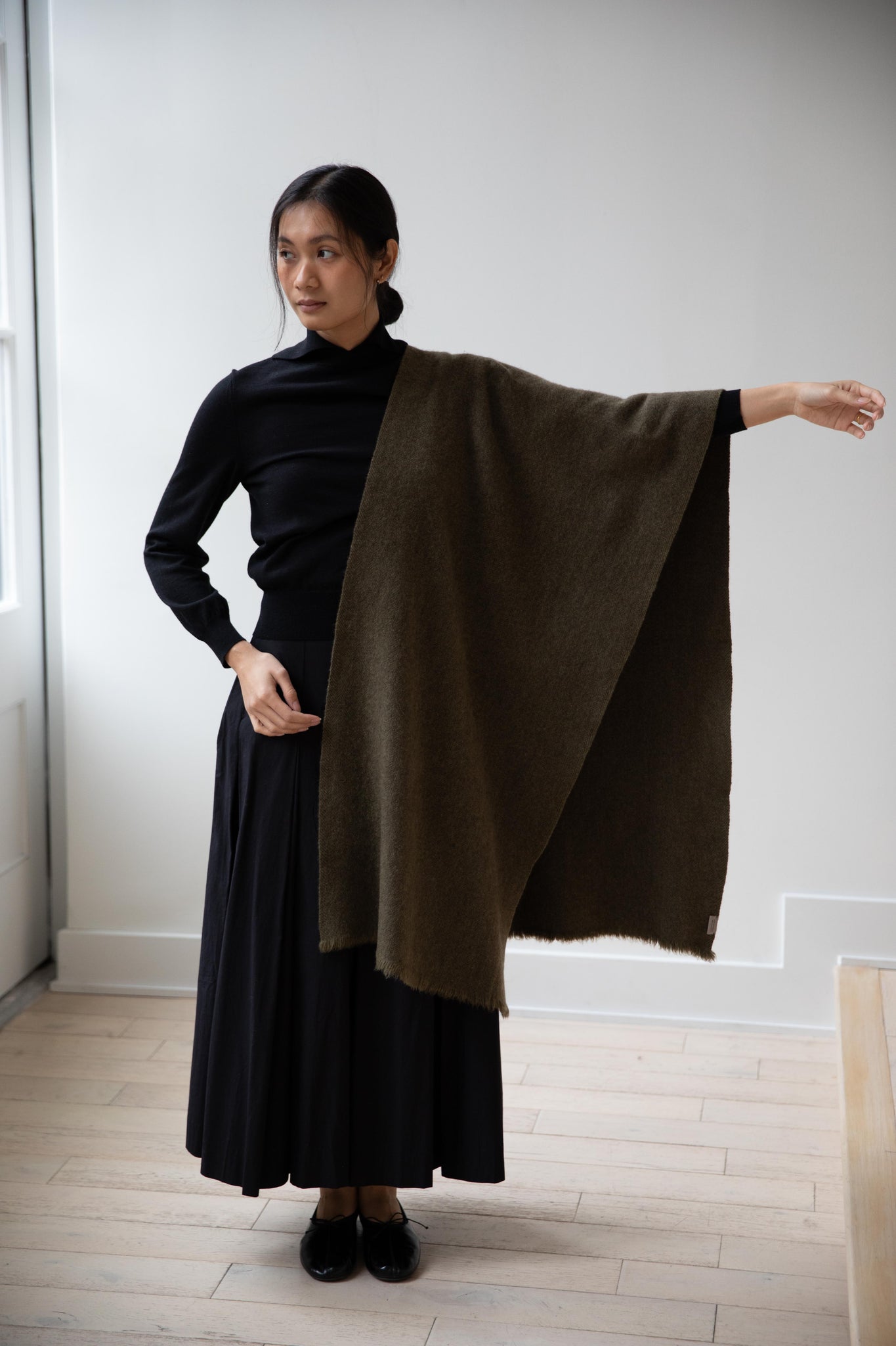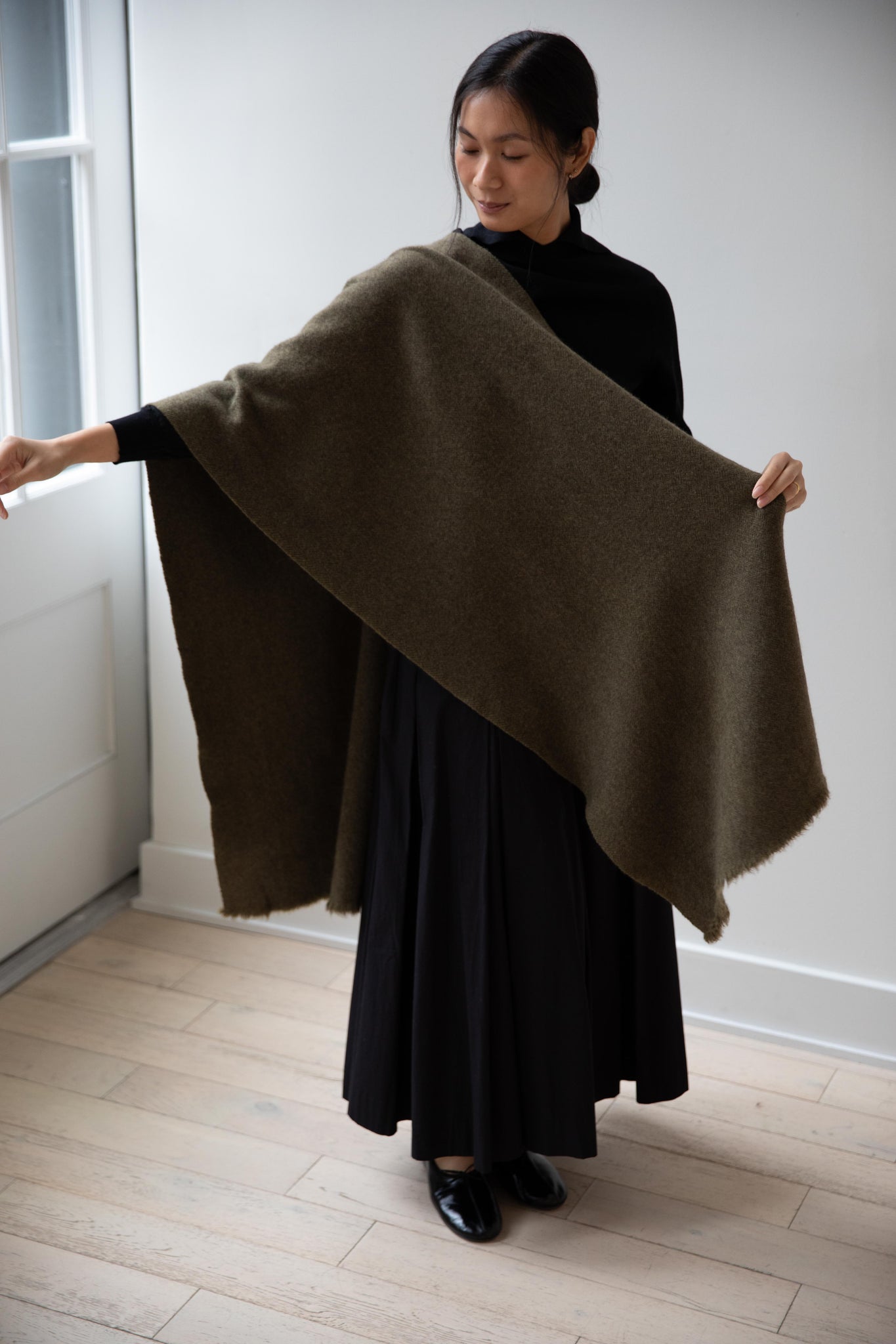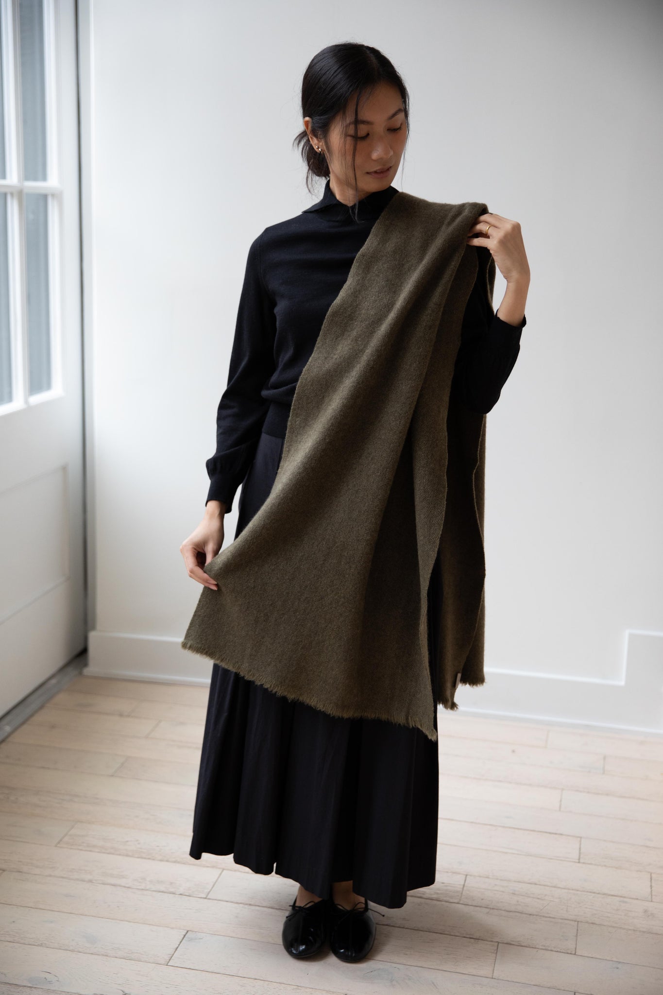 Norlha | Nomad Dense Boiled Herringbone Scarf in Olive