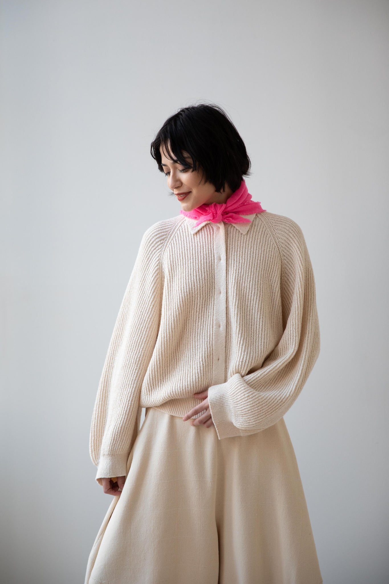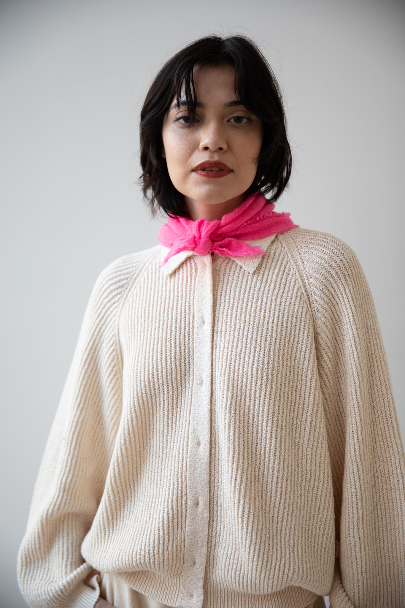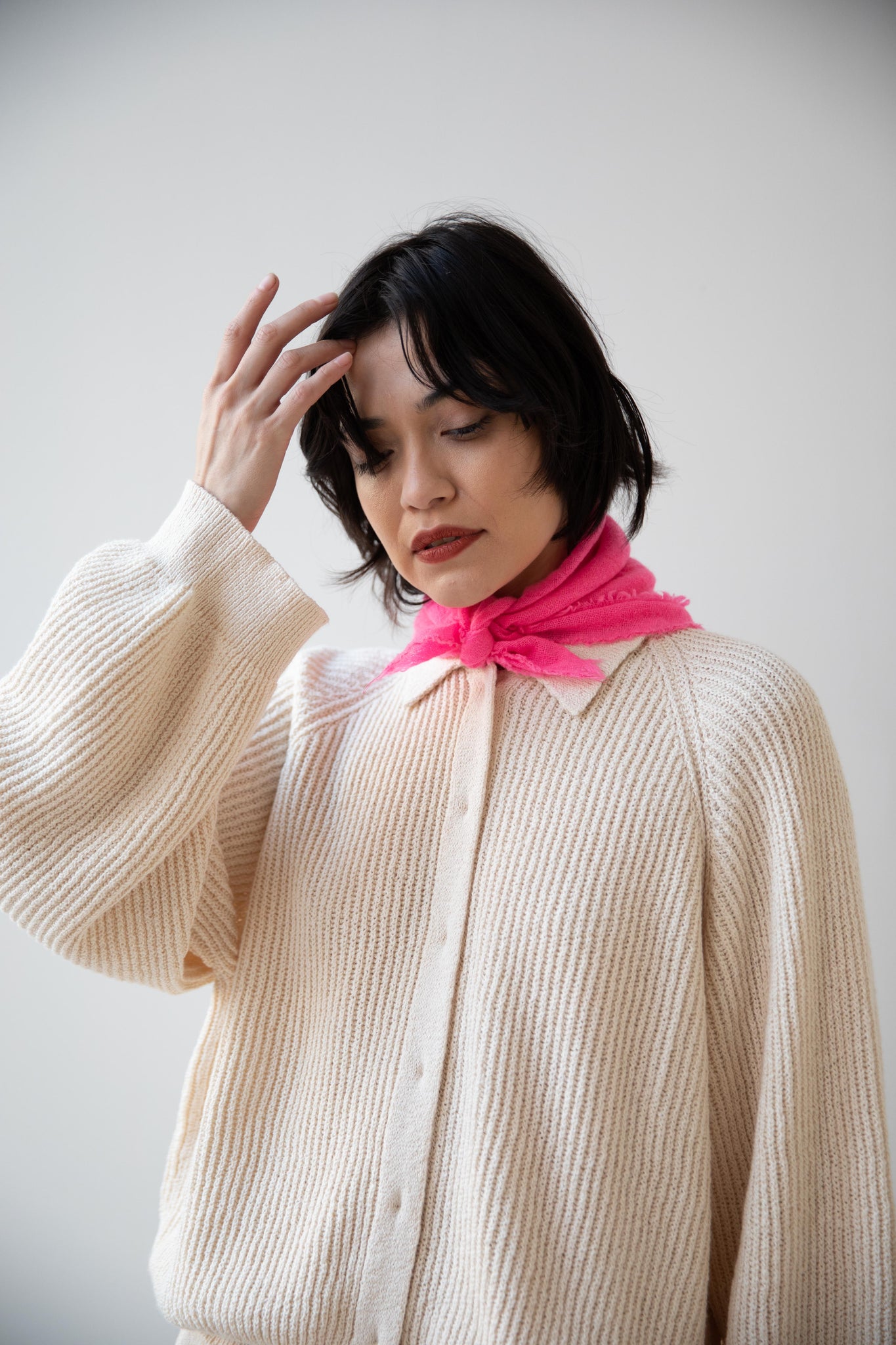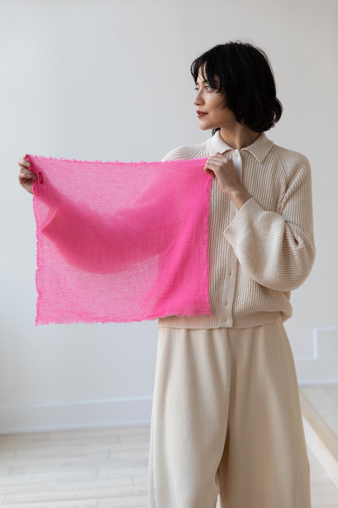 These short and sweet little cashmere scarves are soft as can be and perfect for spring. Roughly the size of a bandana, they add a bit of charm to any look.