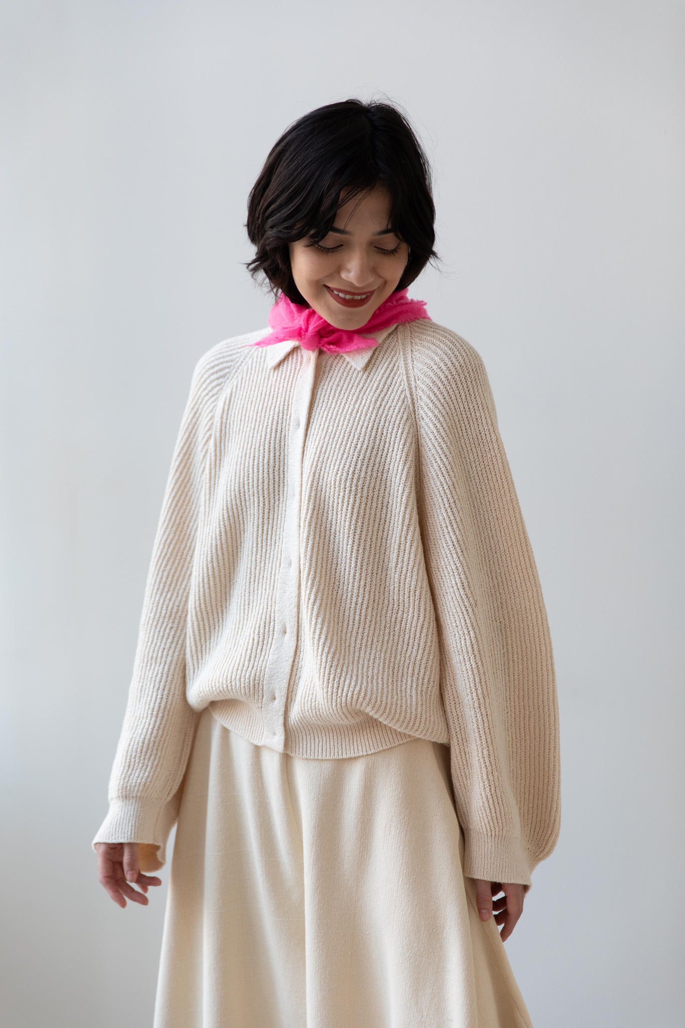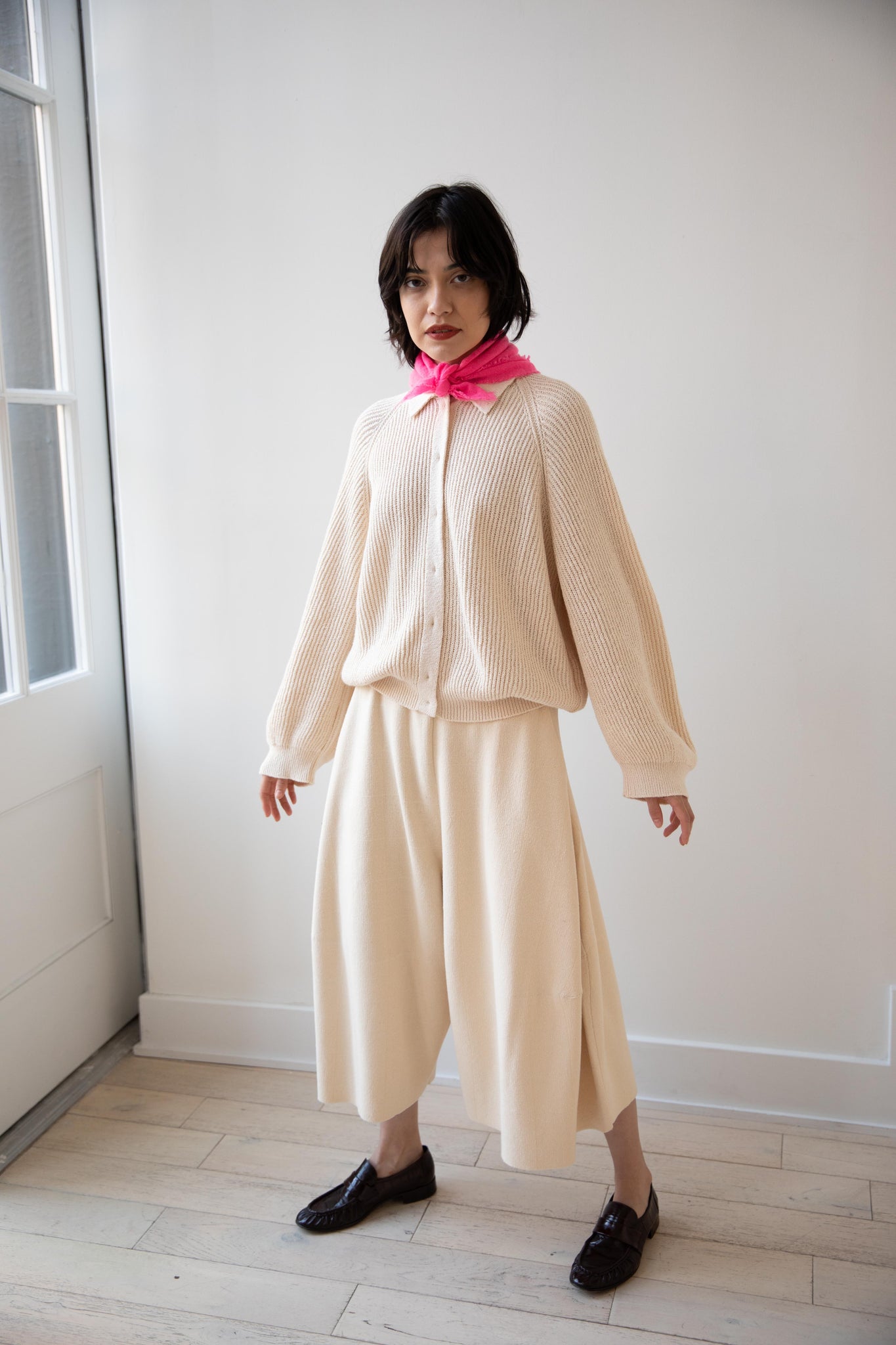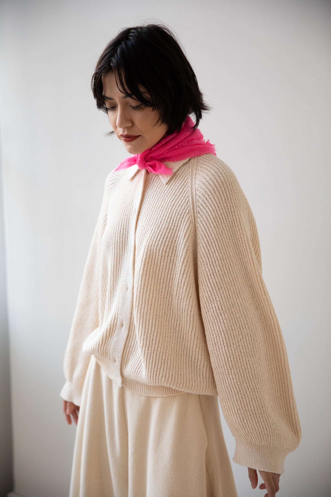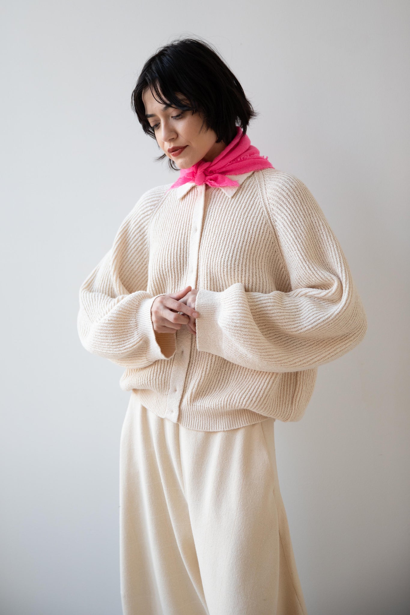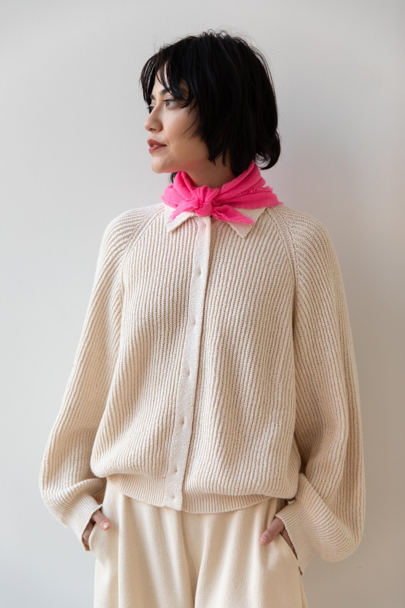 These short and sweet little cashmere scarves are soft as can be and perfect for spring. Roughly the size of a bandana, they add a bit of charm to any look.
