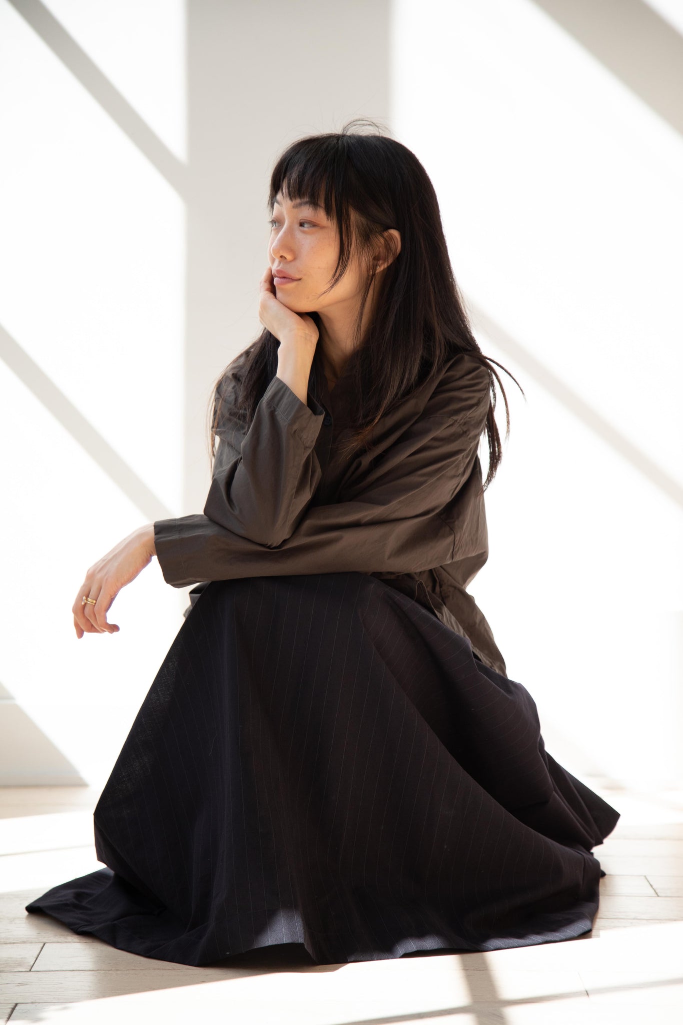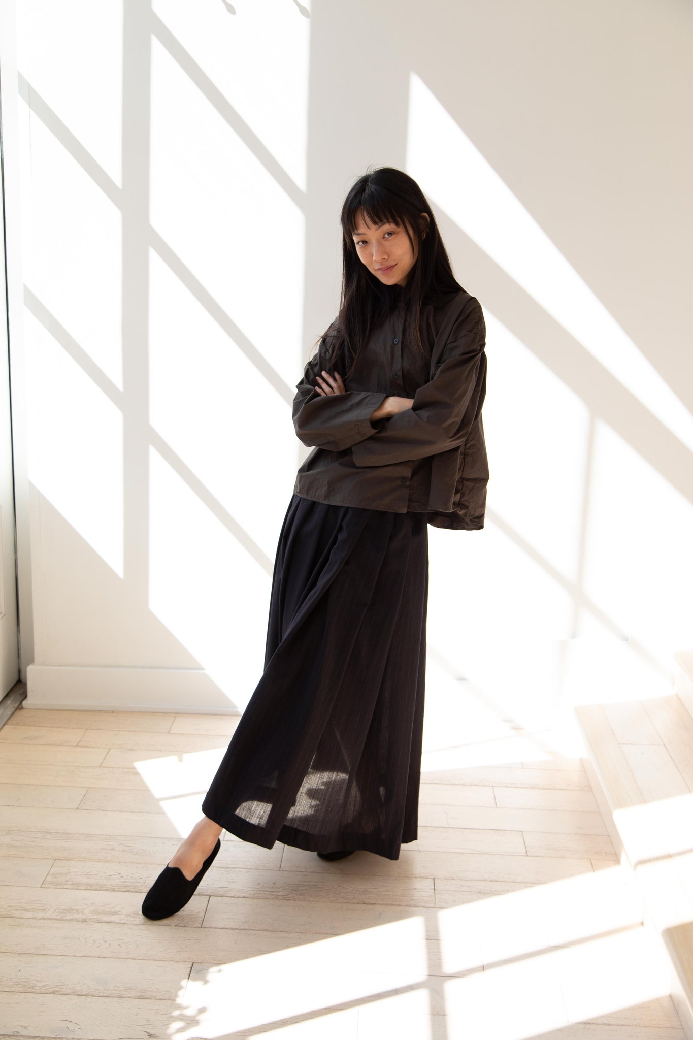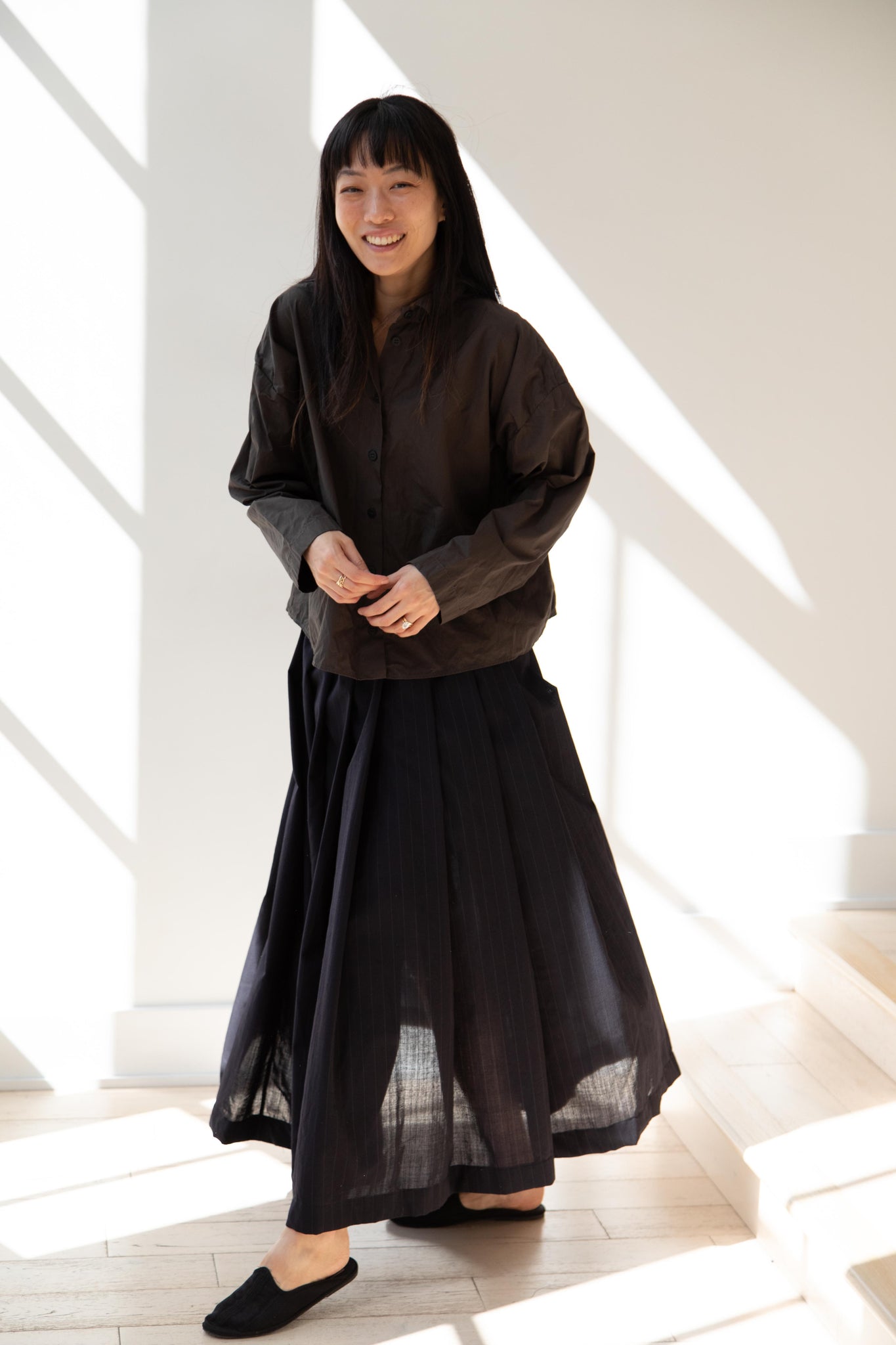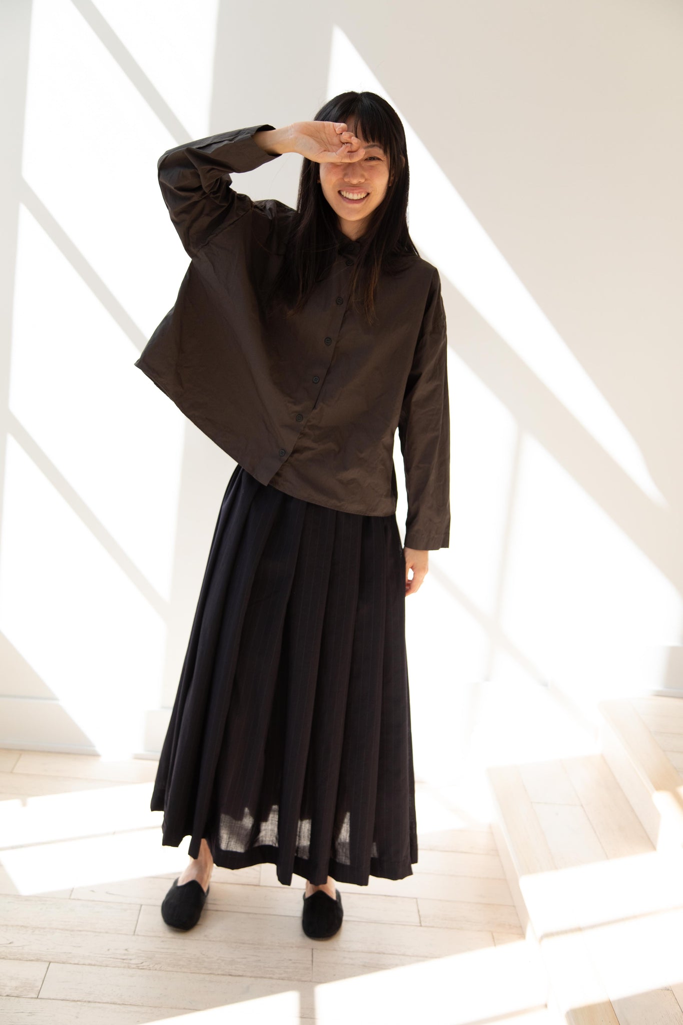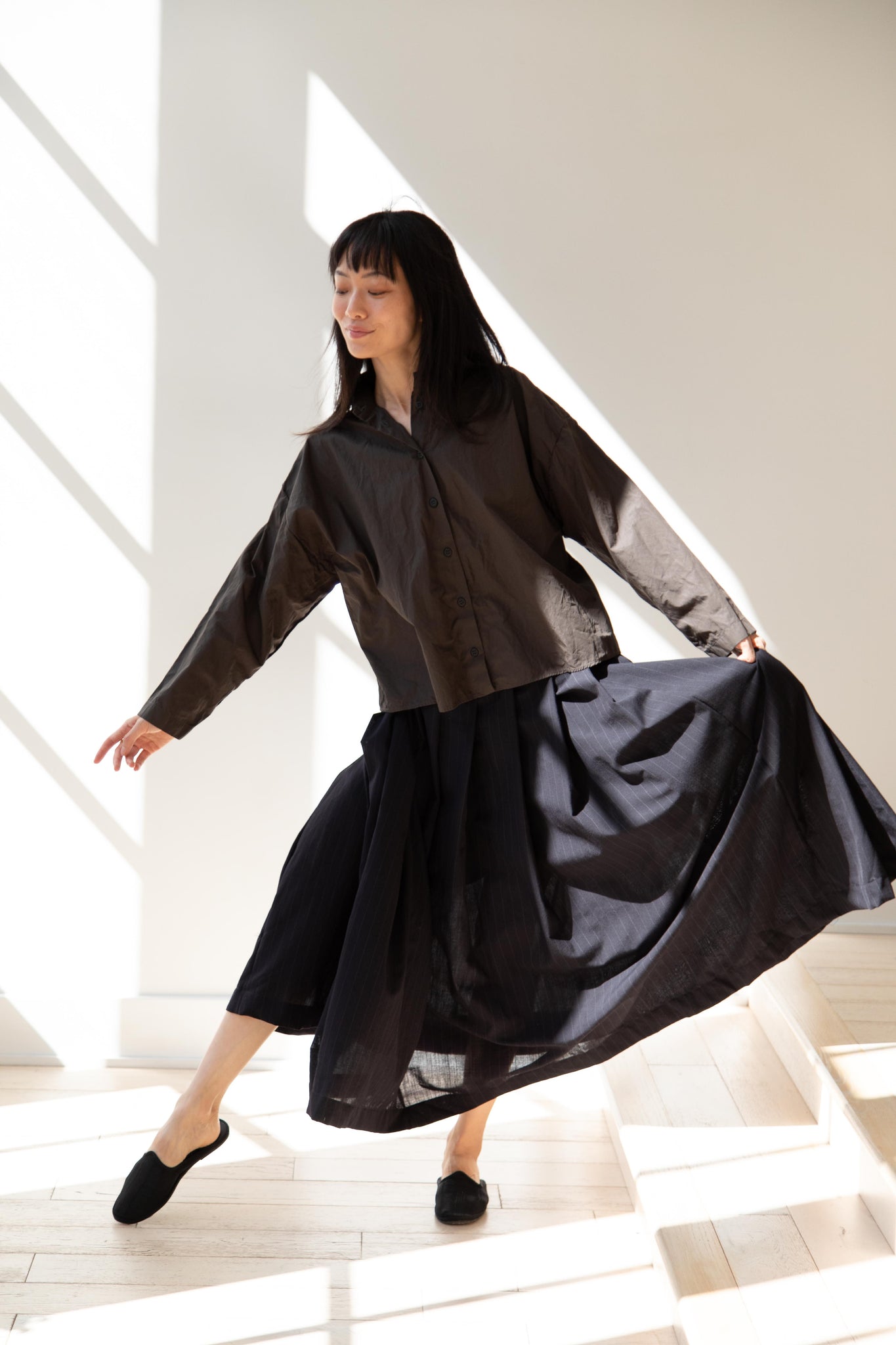 Another classic piece from Bergfabel. This pleated skirt is constructed from a tropical wool with an elastic waist and an interior drawstring, making it super comfortable and a pleasure to wear. It provides great shape and interest to any outfit year round!