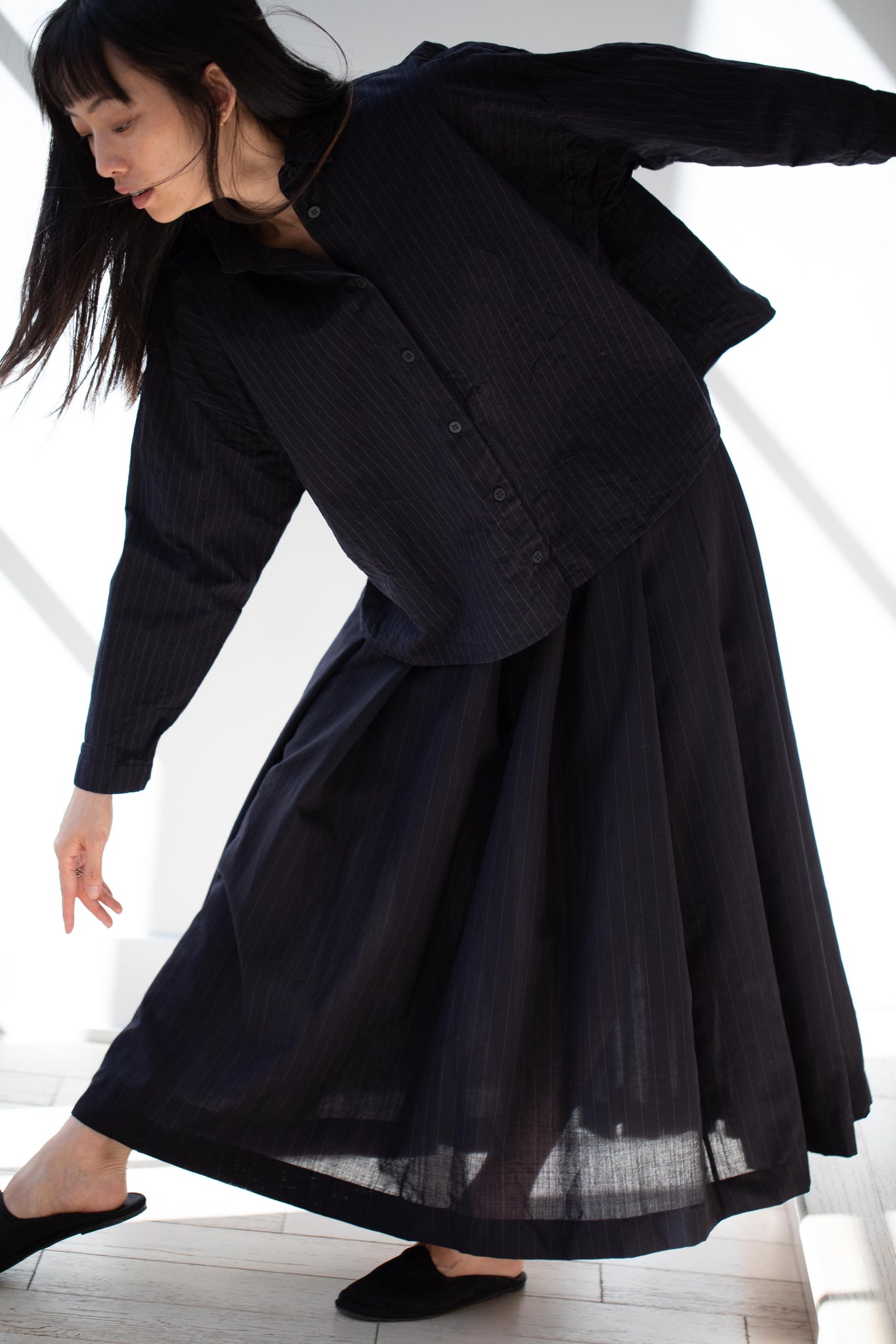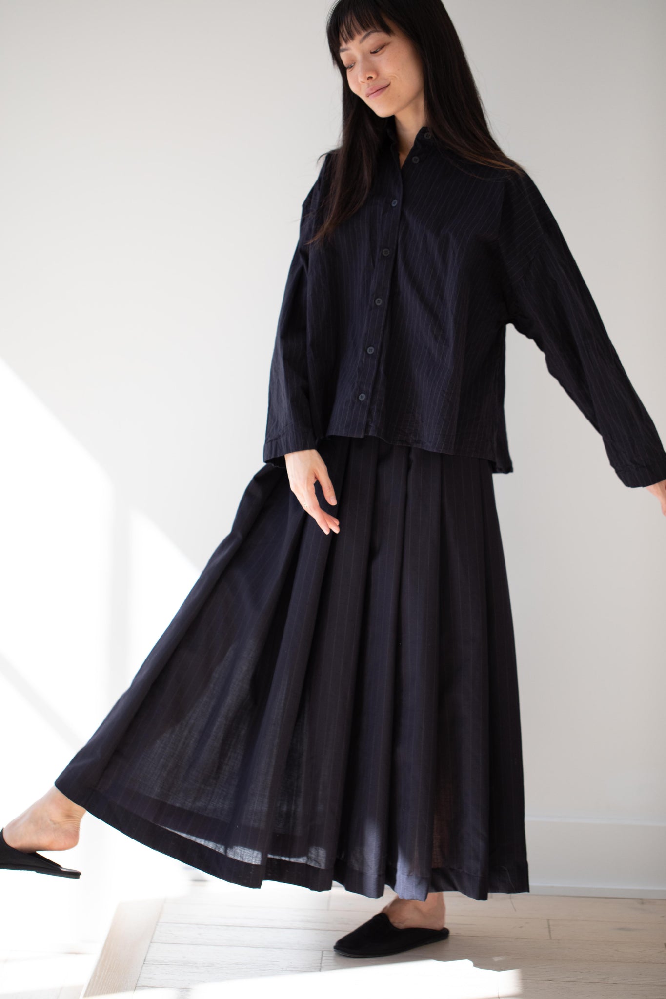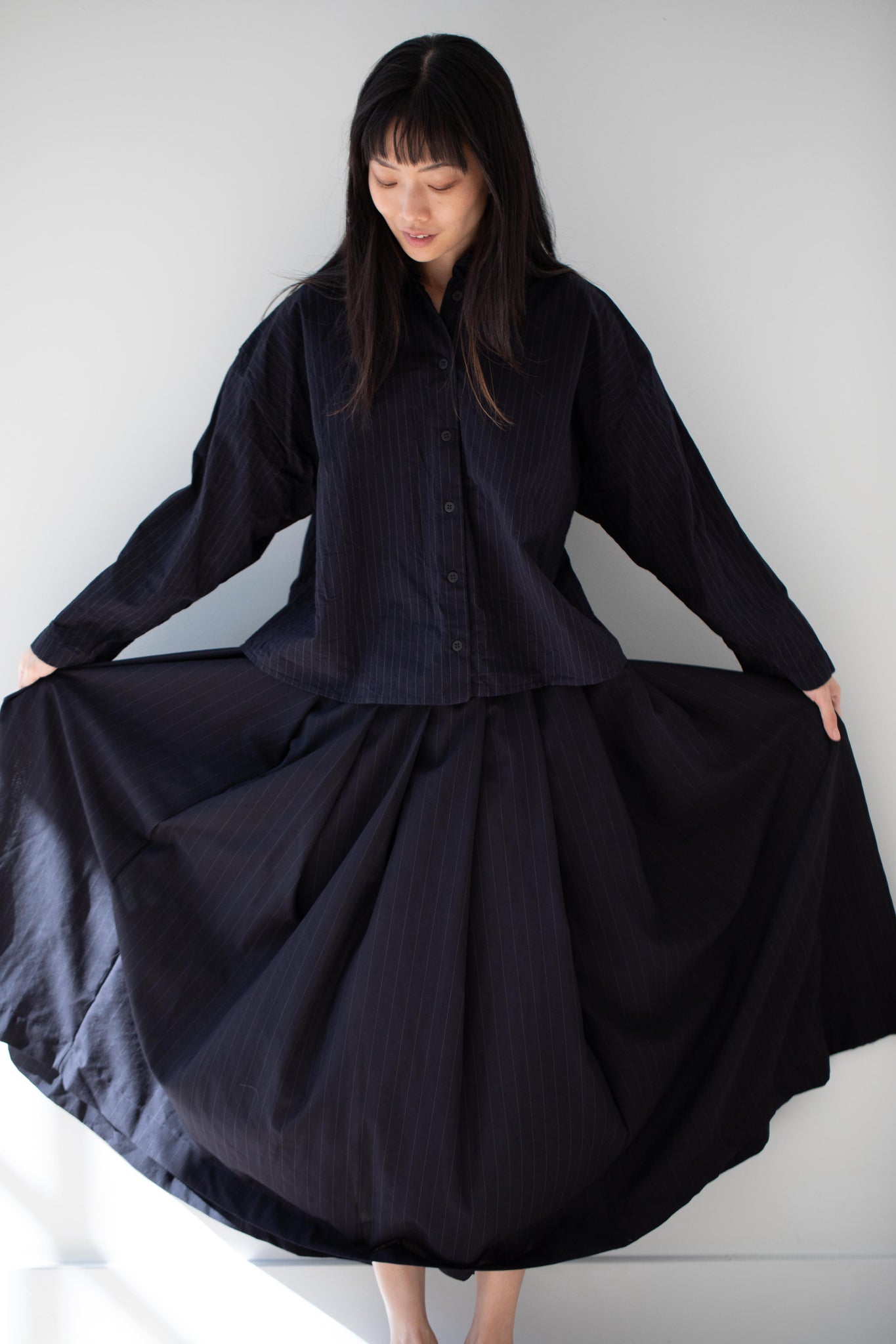 Bergfabel | Matilde Skirt in Navy Stripe Wool