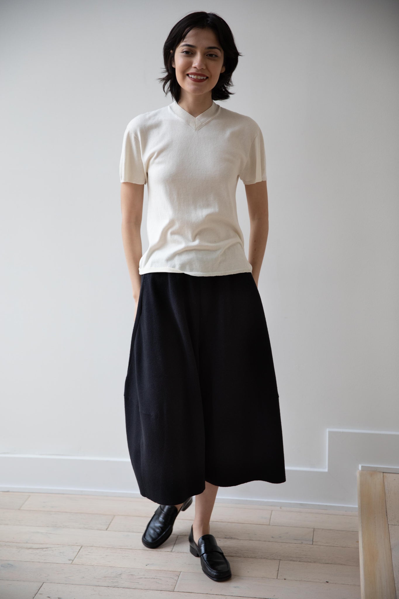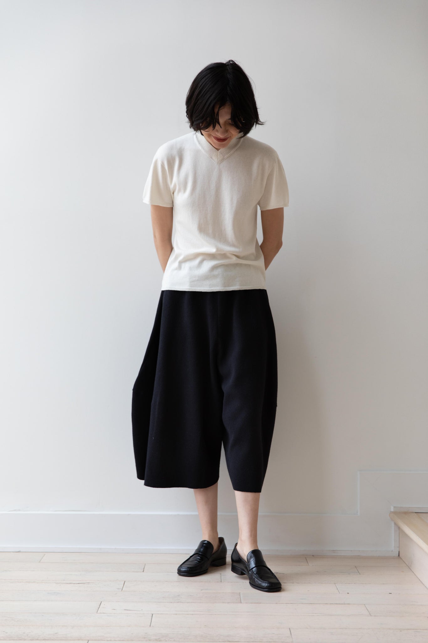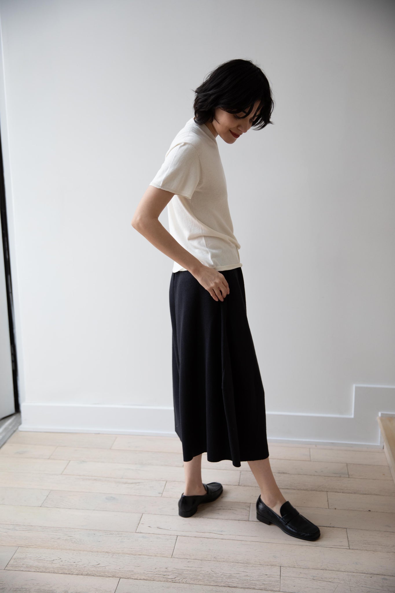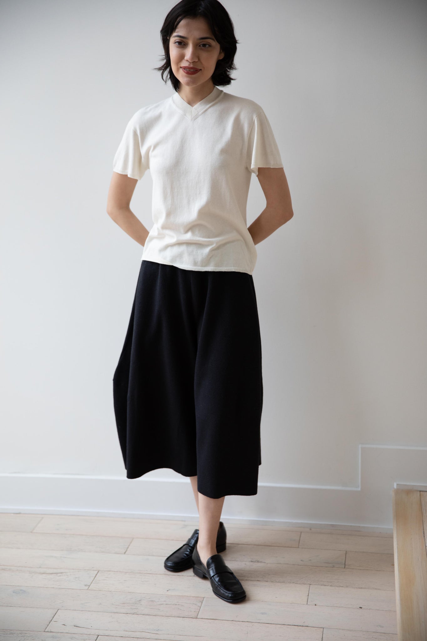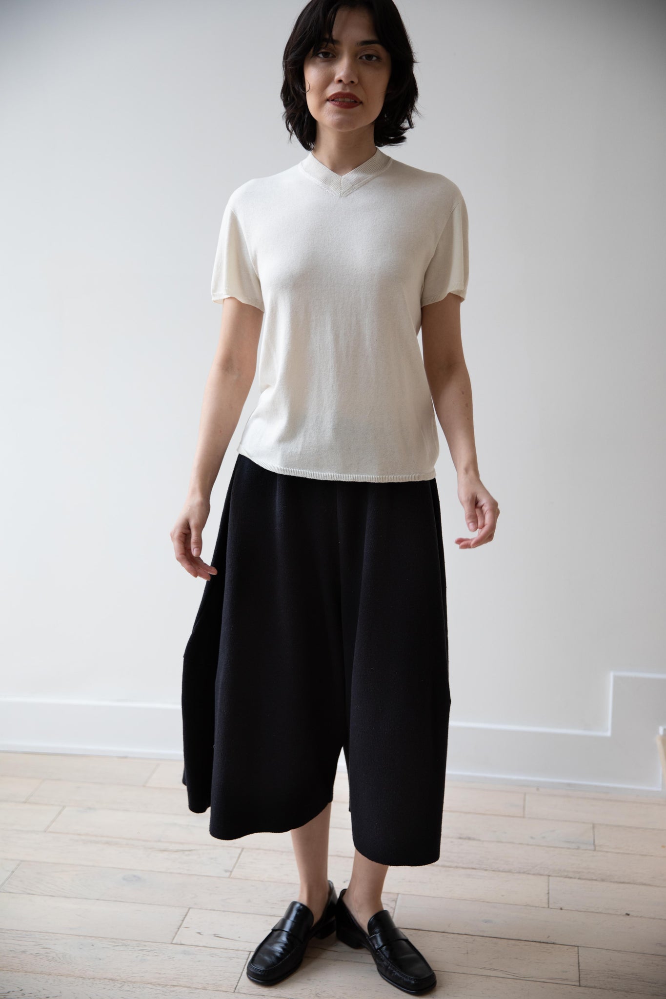 This fully fashioned t-shirt is made from a beautiful off white cotton silk yarn. It's lightweight and will be perfect for spring and summer wear. The high V neck adds a nice touch to this piece.