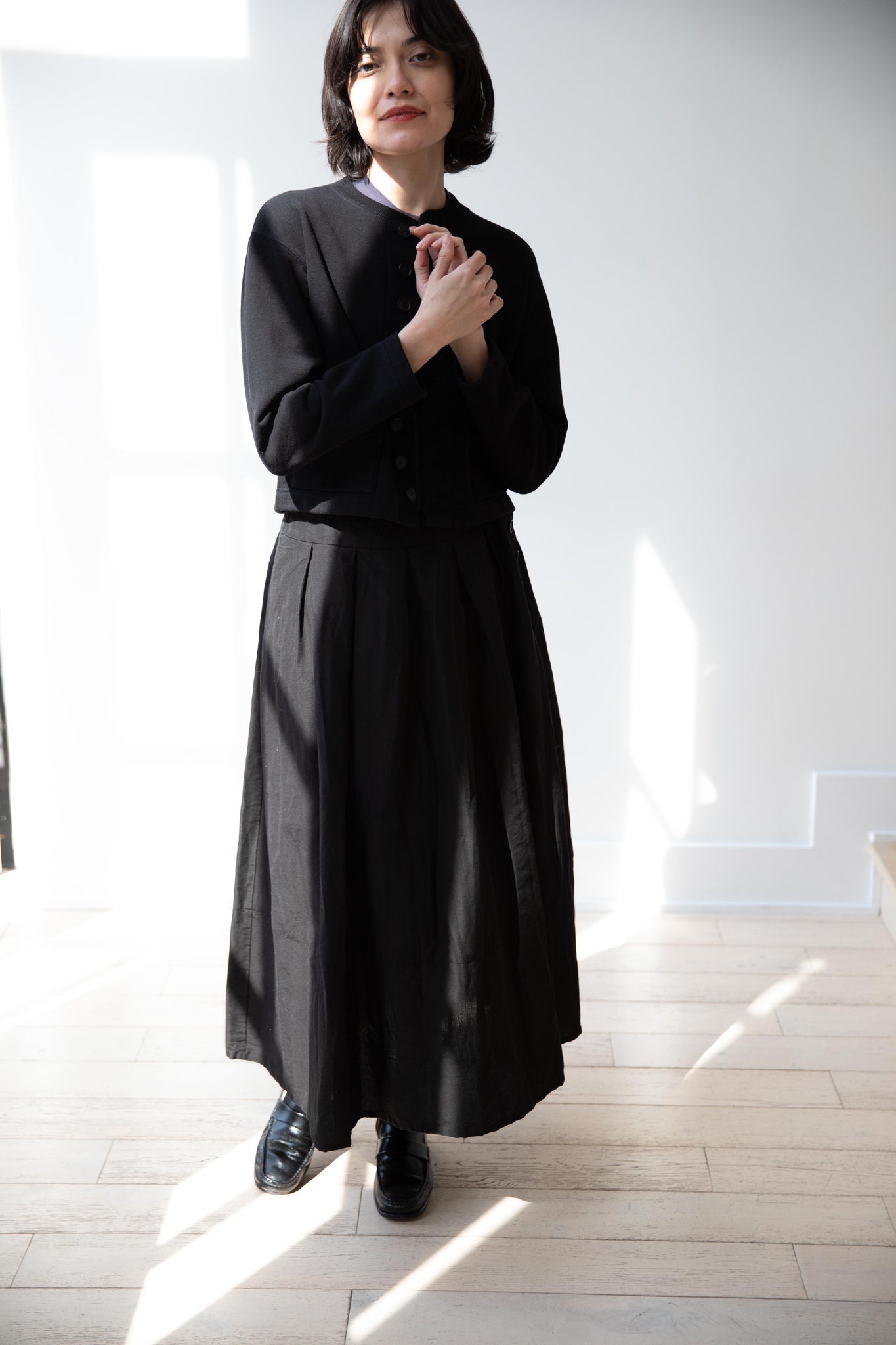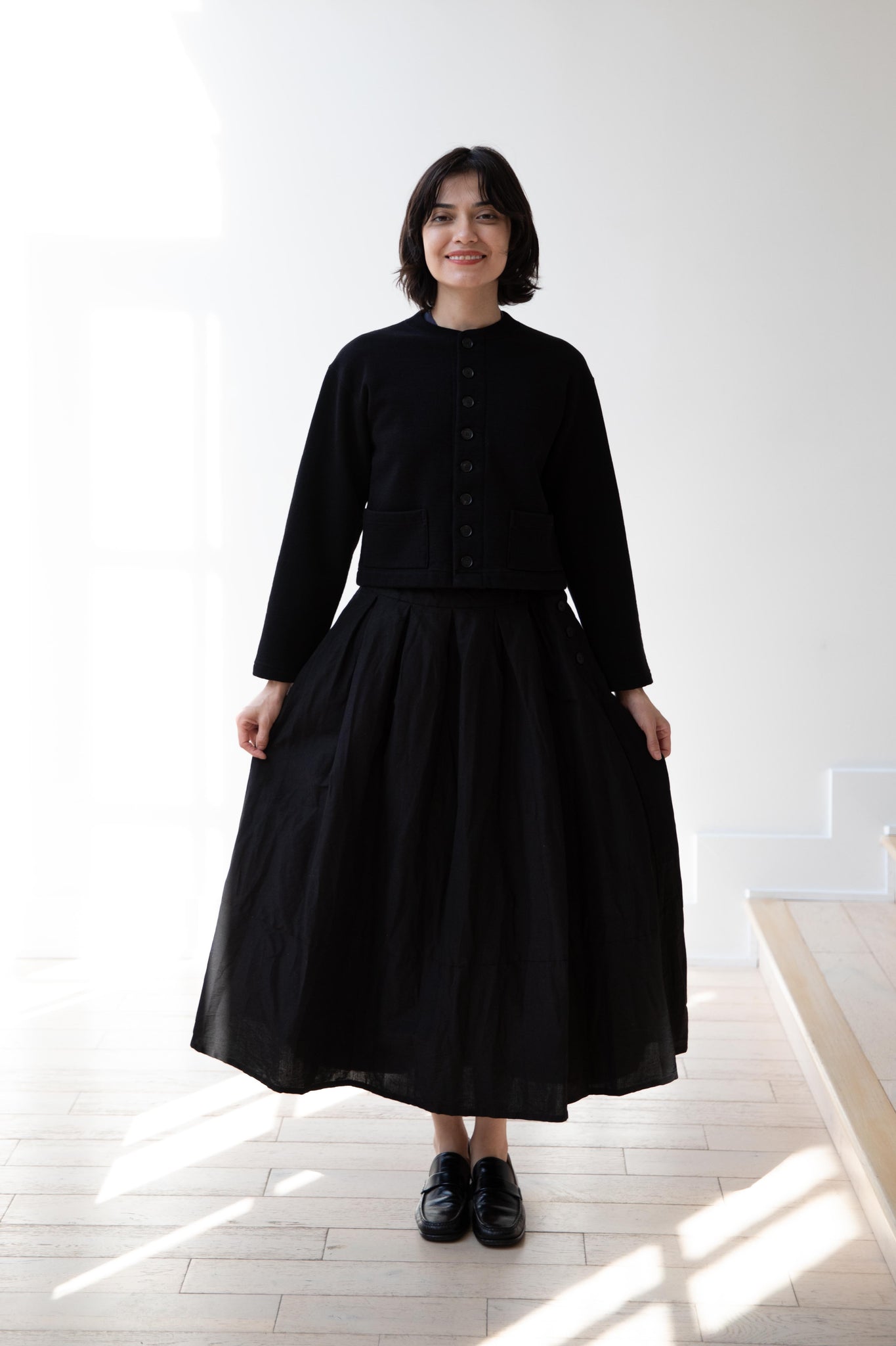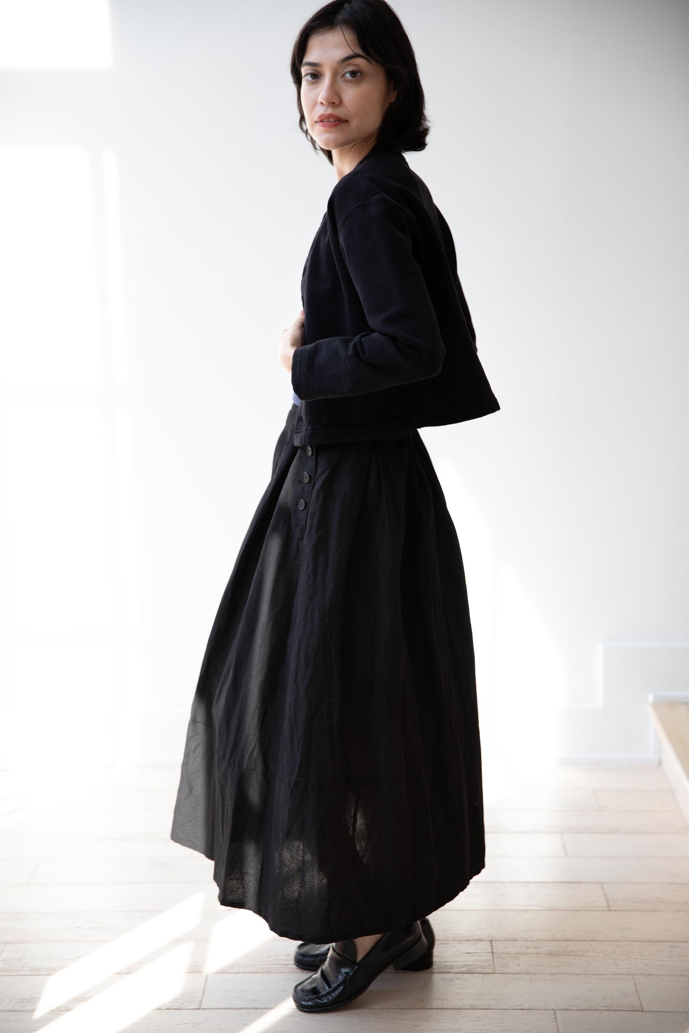 Pas de Calais | High Density Linen Cotton Skirt in Black