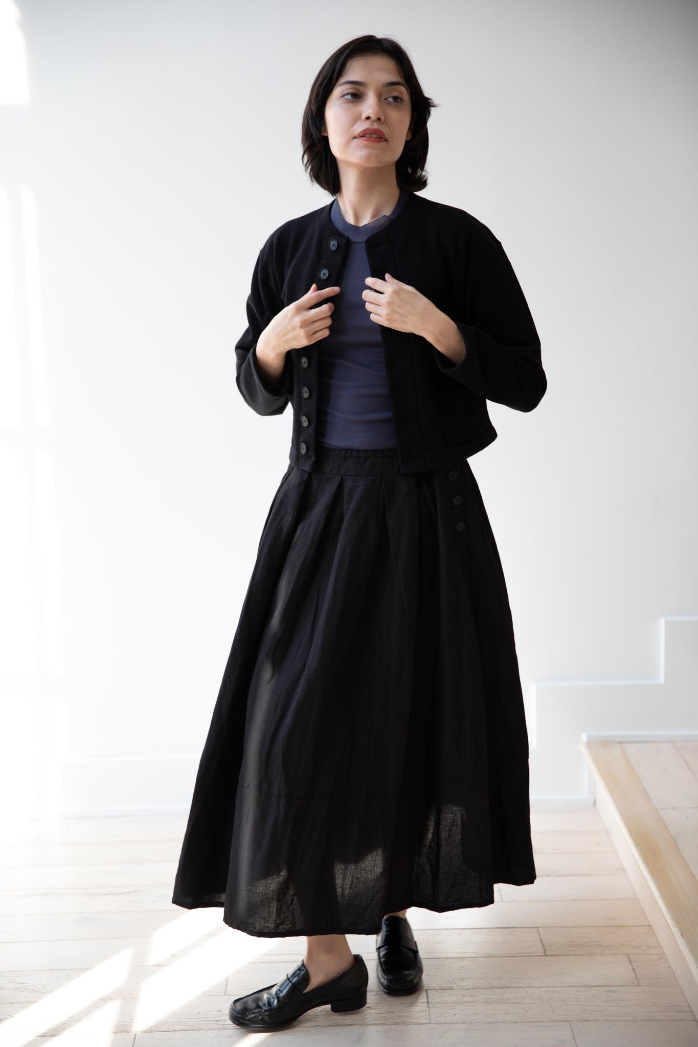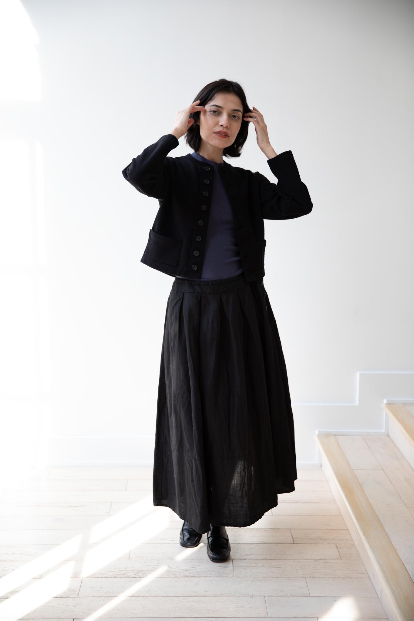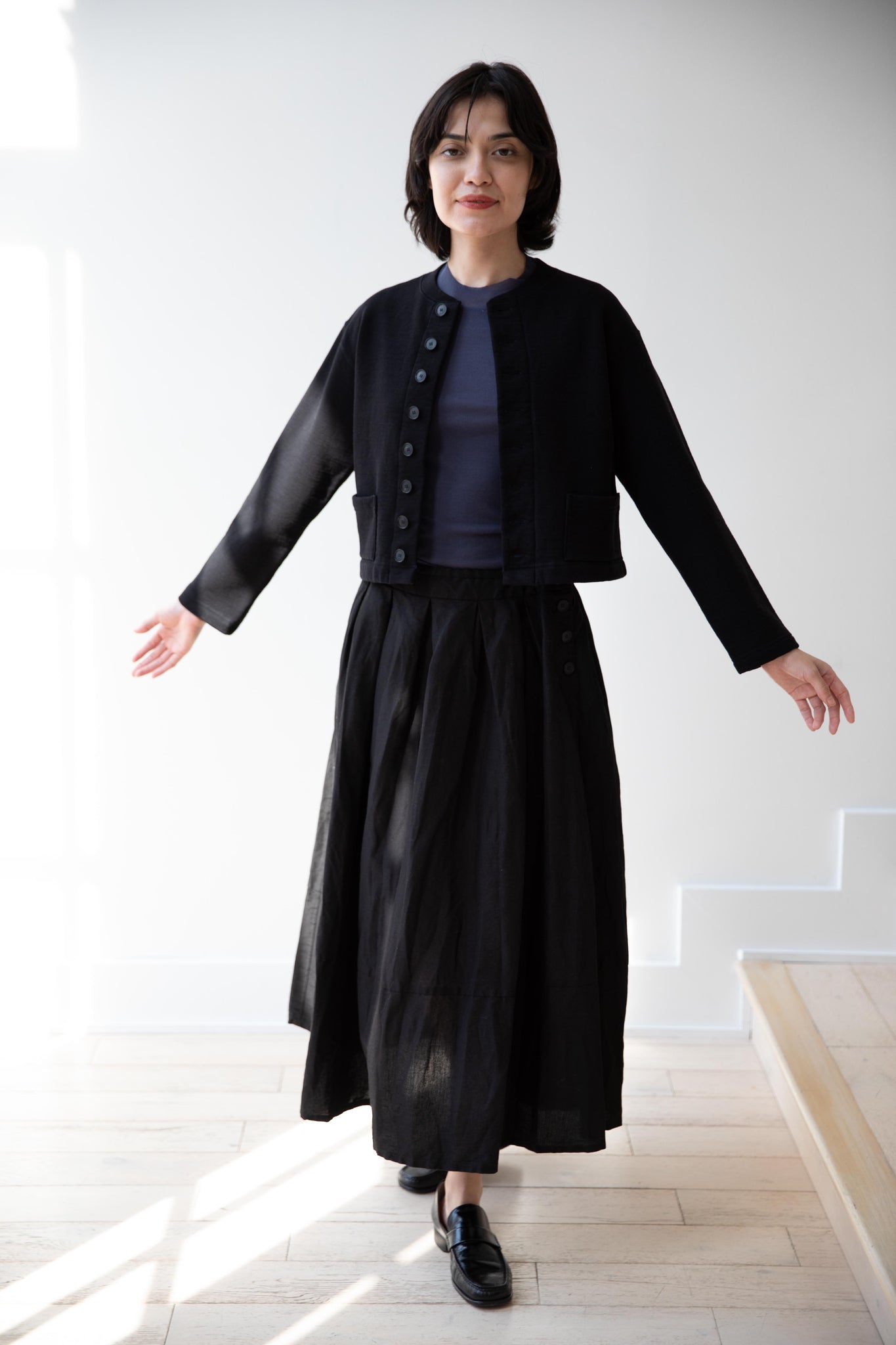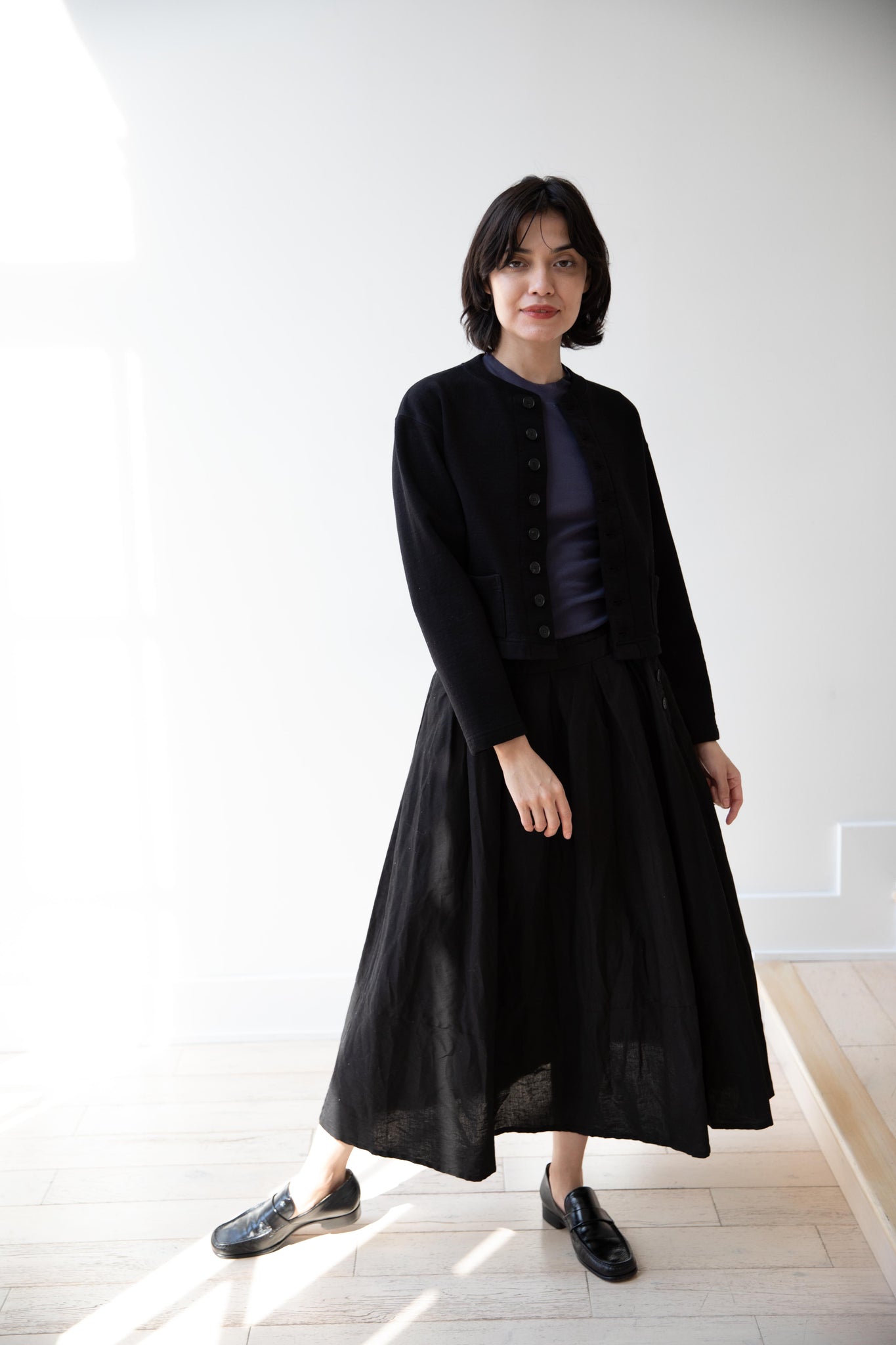 Pas de Calais | High Density Linen Cotton Skirt in Black