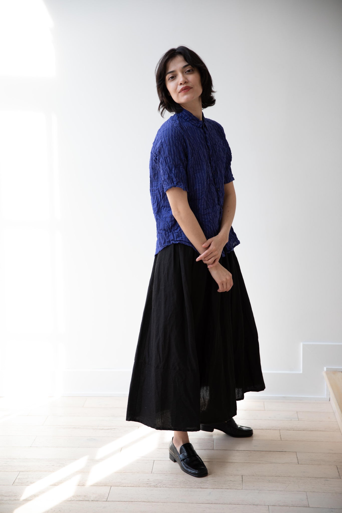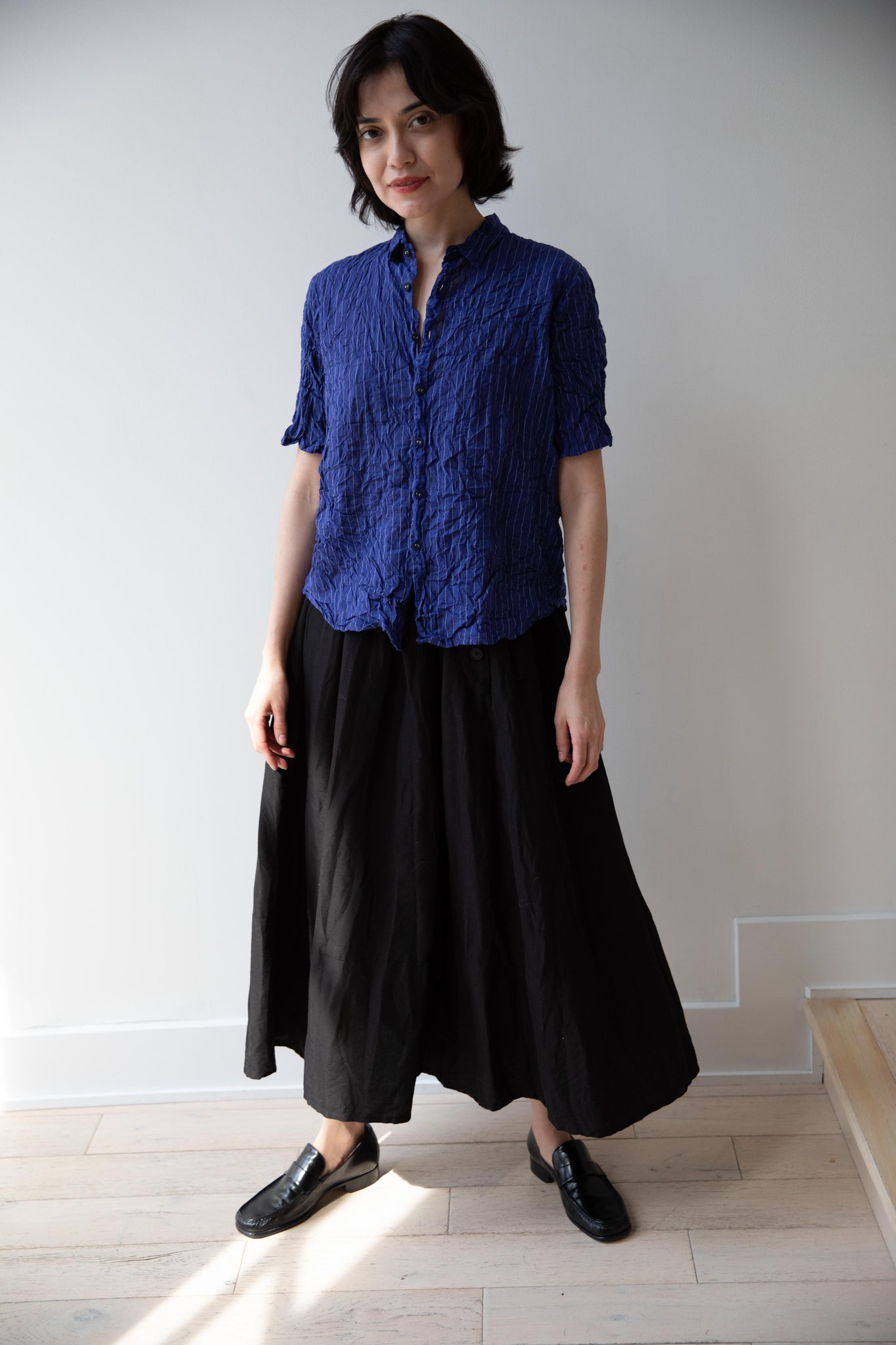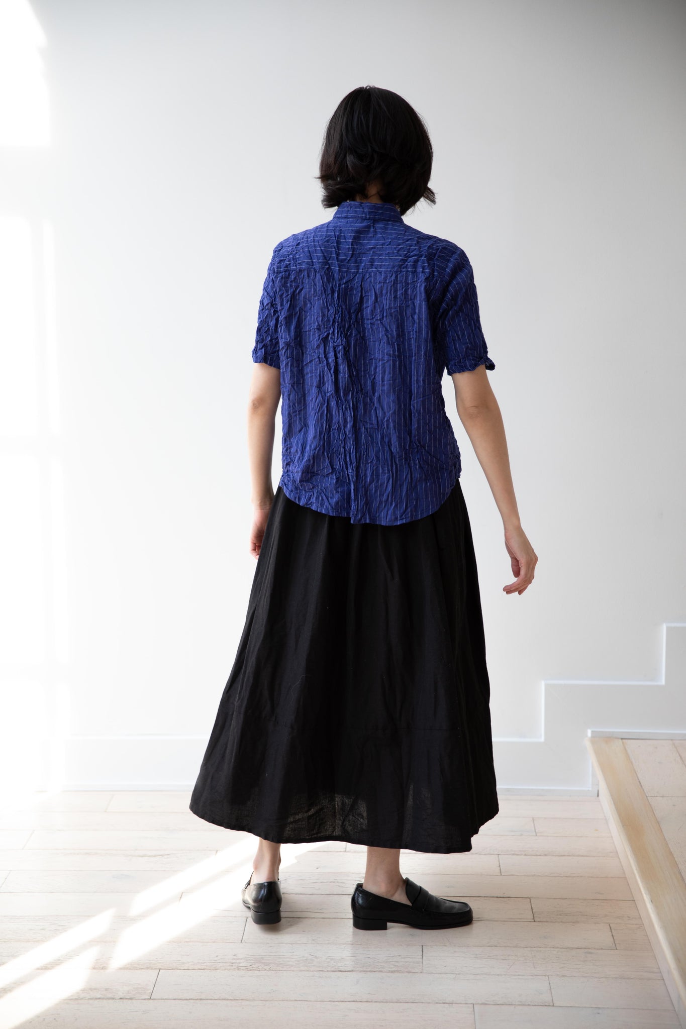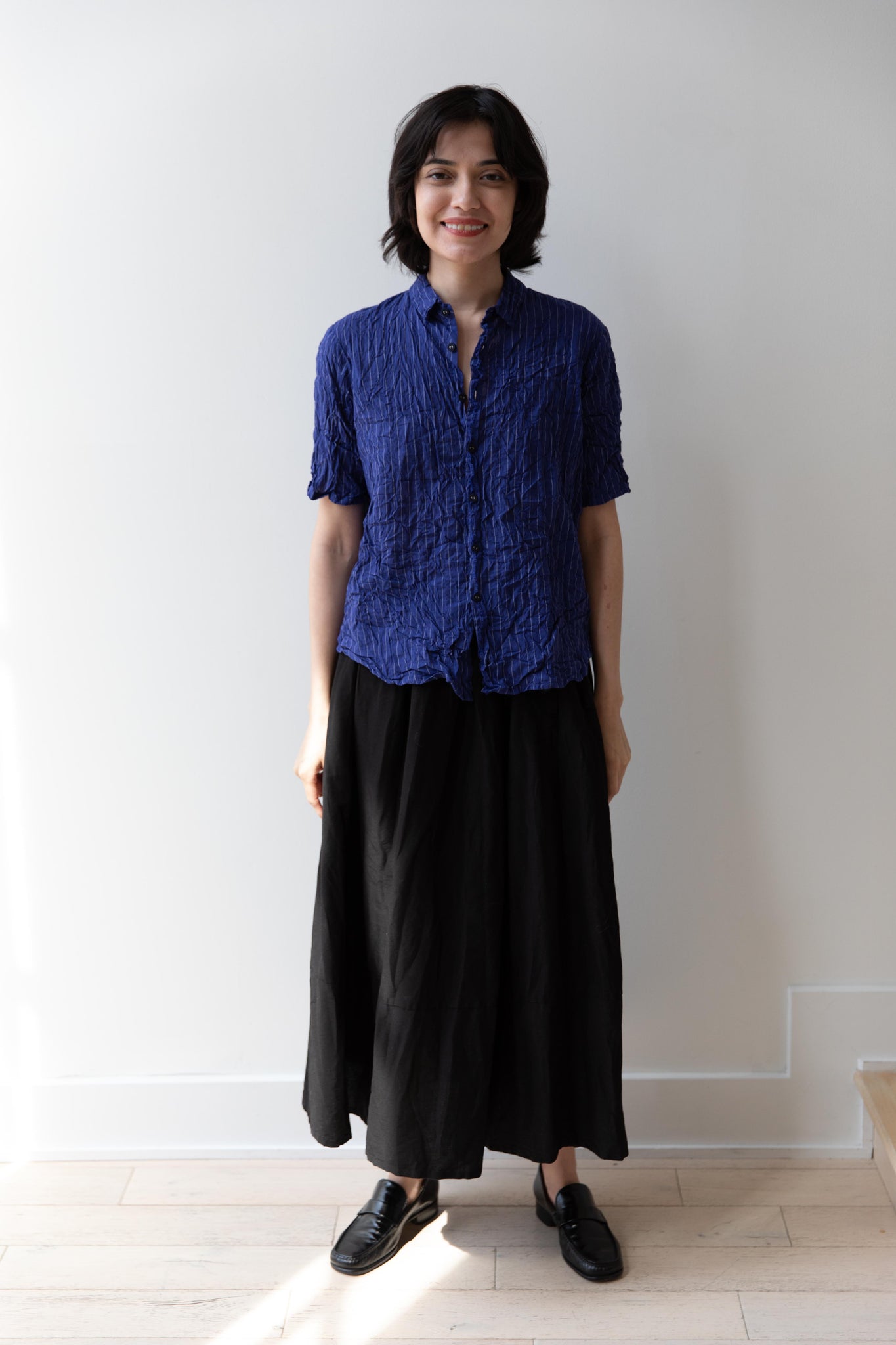 Pas de Calais | Shirring Stripe Short Sleeve Blouse in Navy