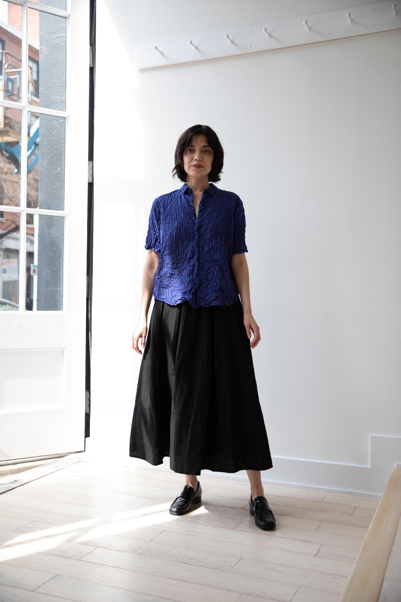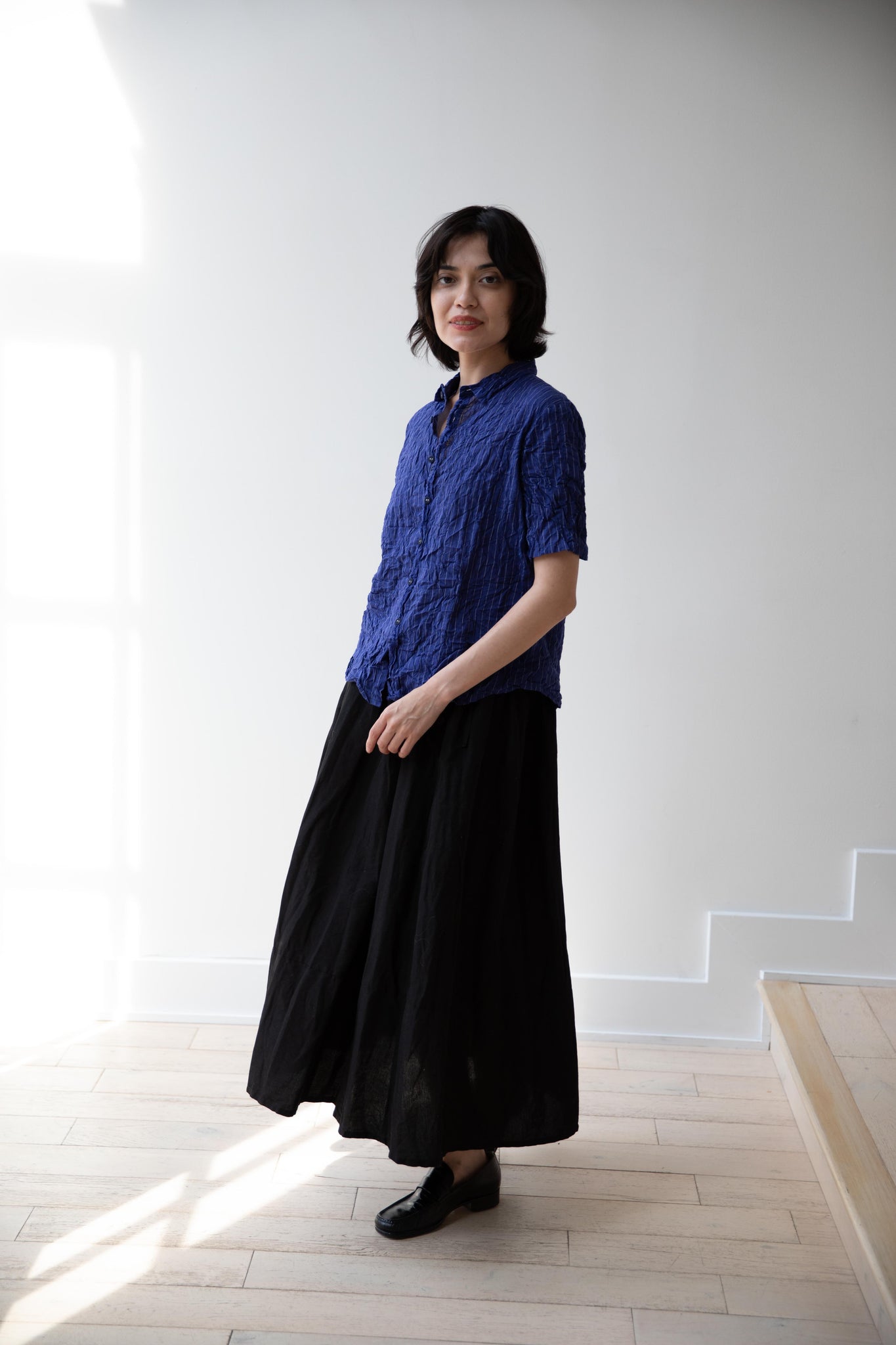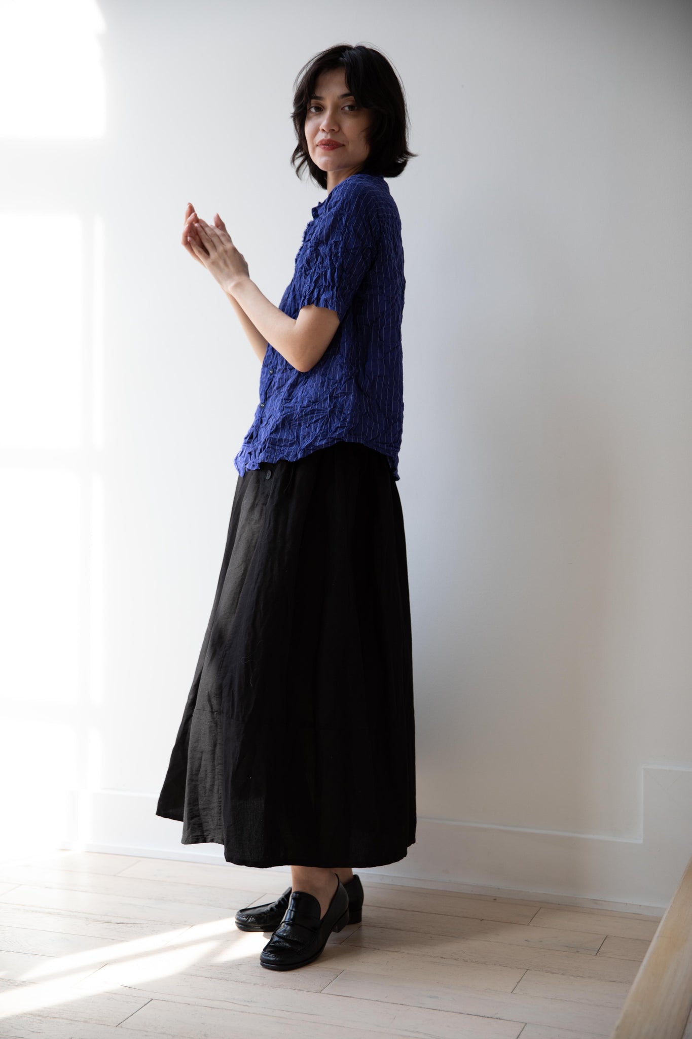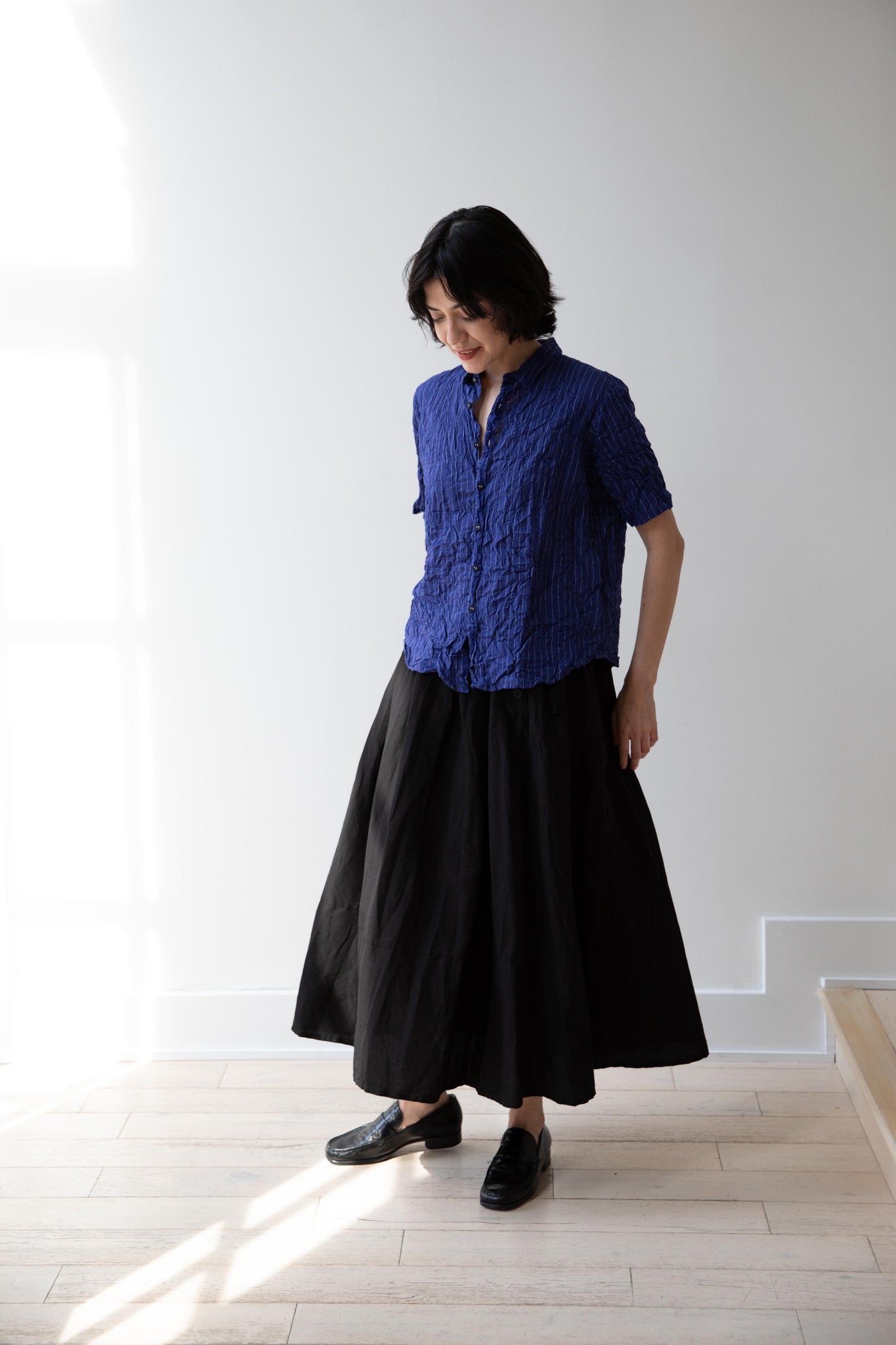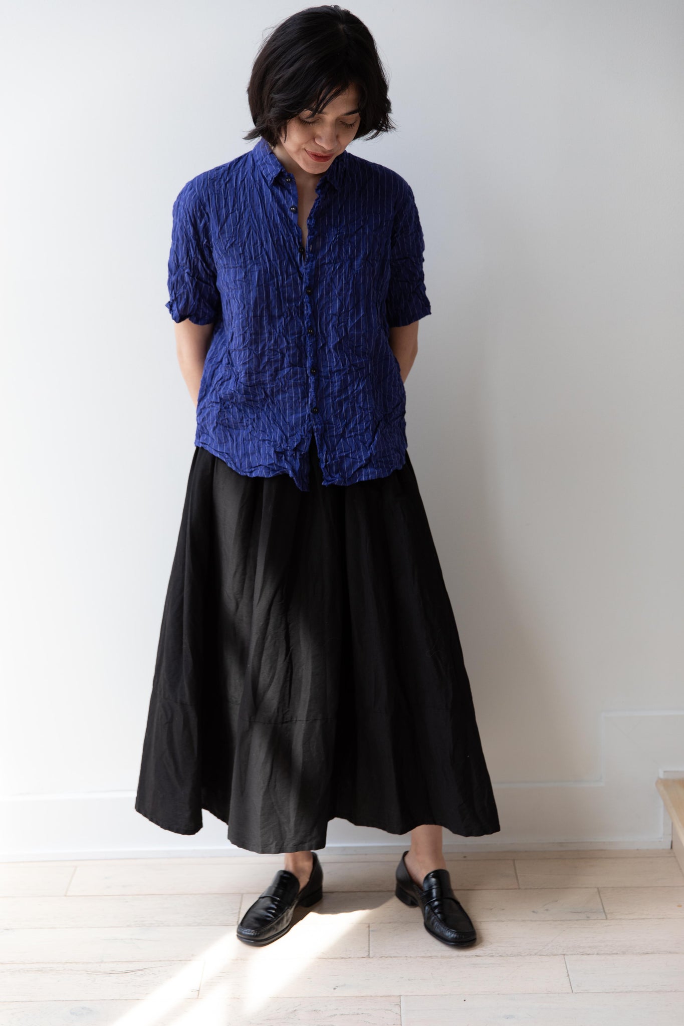 Pas de Calais | Shirring Stripe Short Sleeve Blouse in Navy
