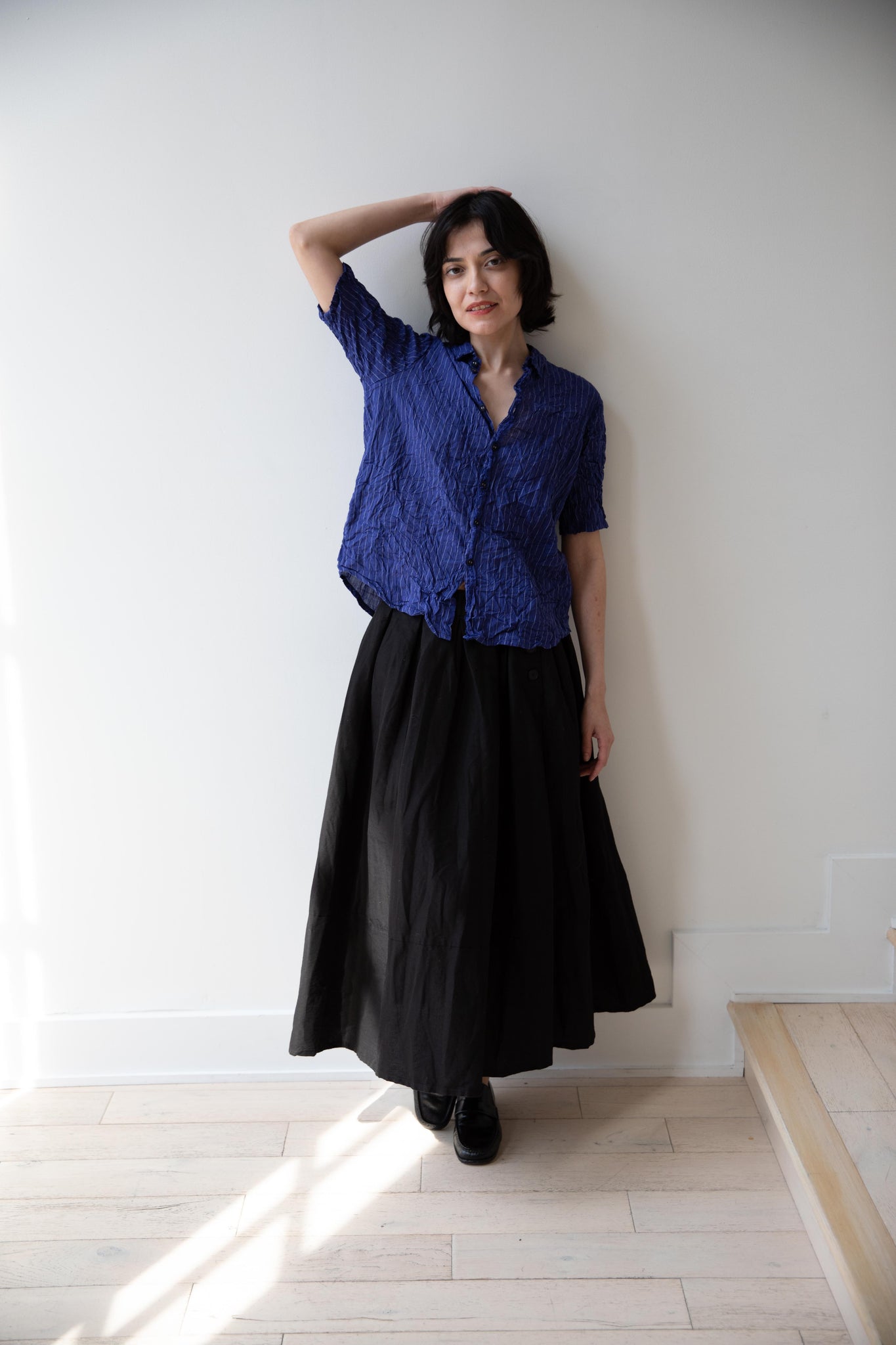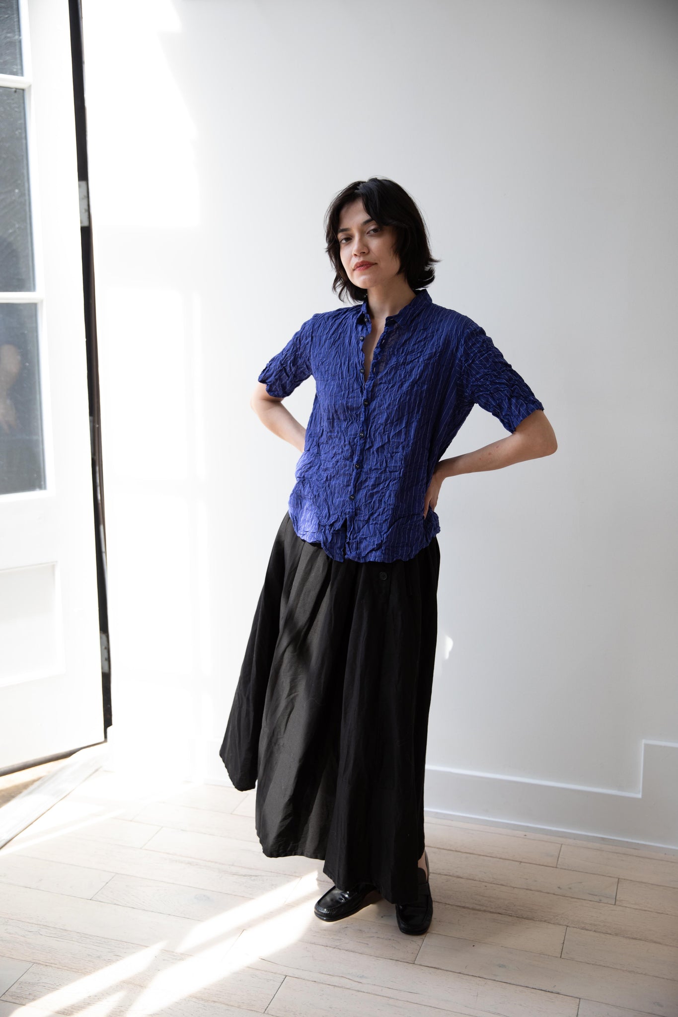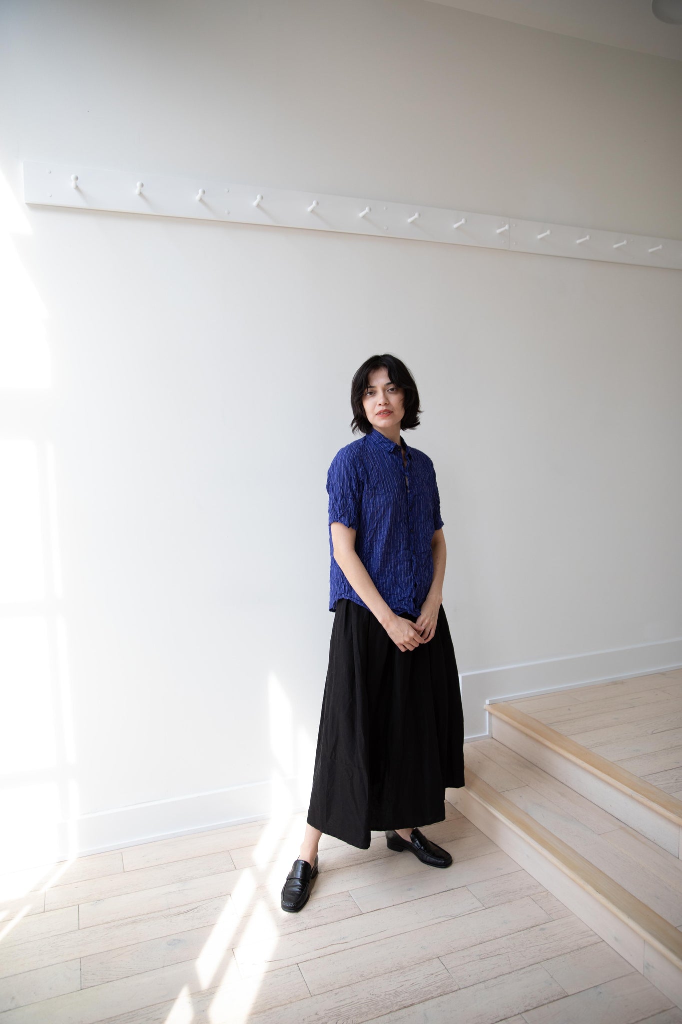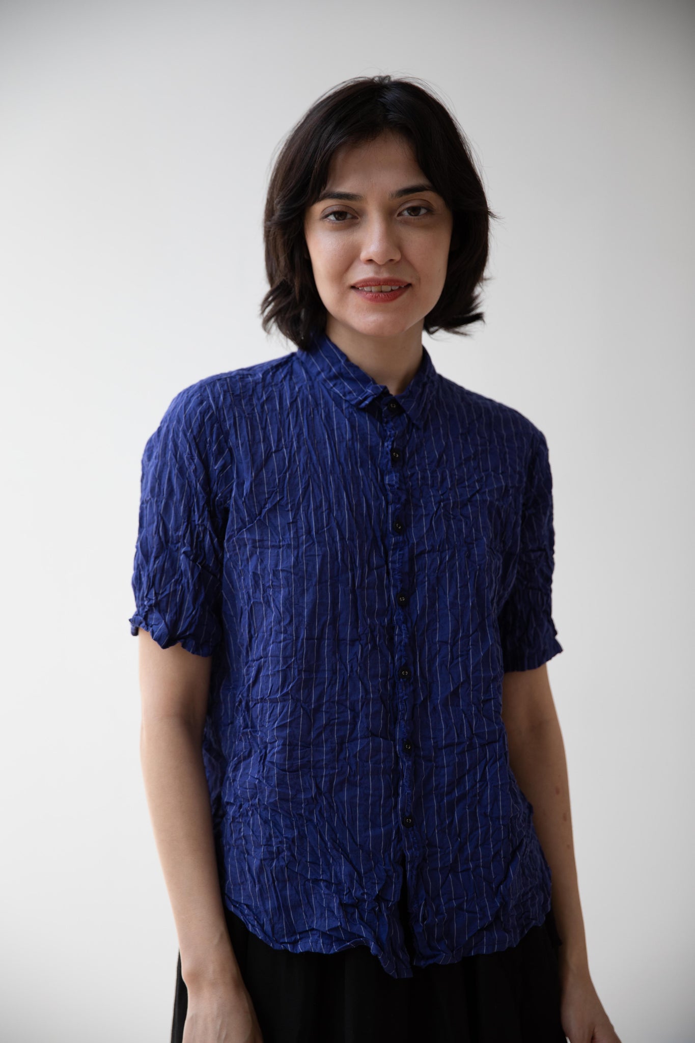 These short sleeve shirts from Pas de Calais are the best!  Made from a lightweight crinkly striped cotton, there is a button up front and petite collar.  There is a subtle raw edge detail down the button placket.